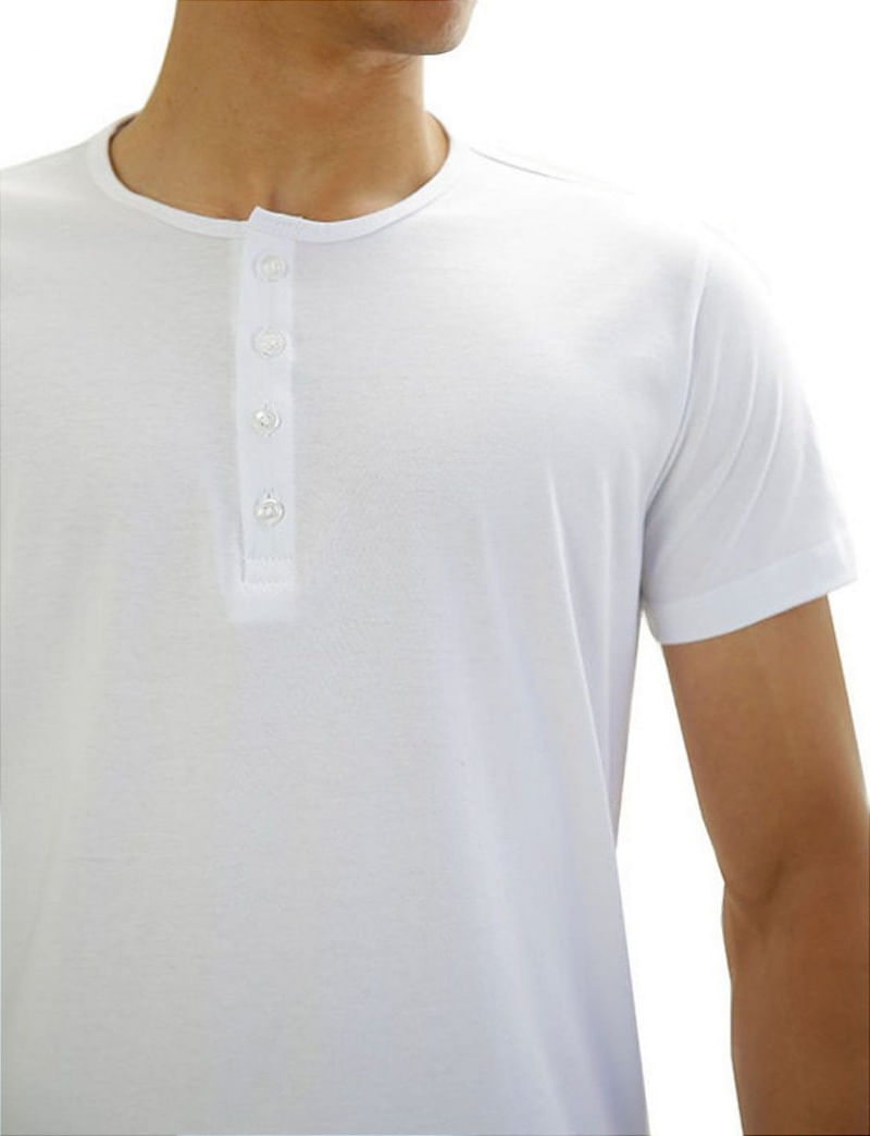 Camiseta Masculina Ixória Branca Básica Henley Botões