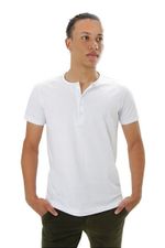 ModaMasculinoRoupasCamisetaCamiseta Masculina Ixória Branca Básica Henley Botões