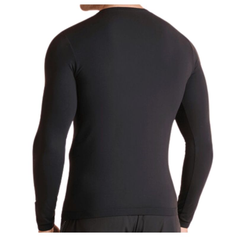Blusa de manga longa, gola redonda, justa ao corpo para uso como segunda pele. Promovem Isolamento Térmico, mantendo a temperatura corporal e retardando a troca de calor com o ambiente externo. Indicada para uso externo por ser bloqueadora de vento e estar sendo sempre a camada mais próxima da pele, além das propriedades que neutralizam odores. Composição:96% Poliamida, 4% Elastano Fio desenvolvido com ação antiviral e antibacteriano. Seamless Dry A mais moderna tecnologia sem costura em vestuário. Com grande diversidade de pontos e detalhes, os produtos Seamless Dry possuem menos áreas de atrito, sendo que toda a estrutura da peça é uniforme, resultando em uma vestibilidade de maior conforto. A tecnologia permite o uso de pontos para sustentação e suporte muscular, para ventilação estratégica (em zonas críticas de suor), para detalhamento e diferenciação da peça, tendo como base a poliamida, uma fibra nobre, de alta durabilidade e performance. Sensil Heat Poliamida 6.6 premium Eco-Friendly da Nilit desenvolvida para manter a temperatura do corpo quando o clima esfria. A fibra contém um aditivo produzido com resíduos da torra de grãos de café que funciona como um isolante térmico natural, retardando a perda de temperatura que ocorre naturalmente em temperaturas externas baixas. Sensil® Heat ainda possui excelentes propriedades bacteriostáticas, eliminando a proliferação de bactérias que causam odor e oferecendo muito mais conforto.