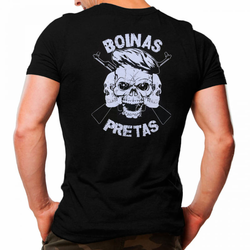 Camiseta Militar Estampada Boinas Pretas Top TáticaElas podem ser básicas ou descoladas, as camisetas são as peças protagonistas do guarda-roupa masculino. Pensando nisso, a Atack Militar desenvolveu uma linha que vai além de camisetas, ela ornamenta a personalidade estampada no visual. Adote-a para o seu dia a dia!Essencial para o cotidiano, a camiseta Atack permite compor um look confortável e descontraído. Produzida em malha 100% algodão, garante um toque e caimento leve. Pode ser utilizada em exercícios, passeios ou no happy hour com os amigos no fim do dia.Boinas Pretas ArmasAs boinas pretas são utilizadas pela Artilharia, Unidades Blindadas ou Mecanizadas. Informações TécnicasPossui bainha nas mangas e na barra, sua gola é arredondada com reforço. O ombro, também possui costura reforçada, garantindo a durabilidade do produto.Composição: 100% algodão, fio 30/1 penteadoEstampa: Serigrafia (Silk Screen) - Técnica utilizando matriz e tinta especial para tecido (não é transfer nem sublimação).Cores Disponíveis: Preta (cód.: 001999PT)Tamanhos: P | M | G | GG | XGGPeso: 200 g Cuidados com o ProdutoPara manter o seu produto em perfeitas condições, se atente as seguintes dicas:- Lavar preferencialmente do lado avesso.- Não lavar a seco.- Passar a temperatura máxima de 110ºC – Preferencialmente do lado avesso.- Temperatura máxima de lavagem 40ºC.- Não utilizar secadora.- Não utilizar alvejante a base de cloro.