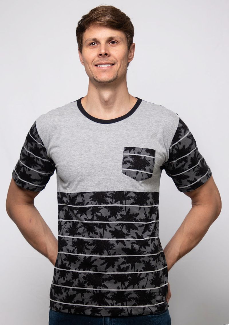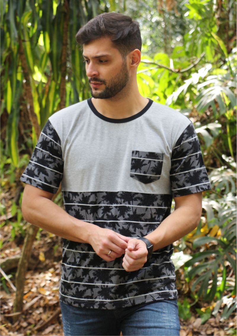 Camiseta Masculina com estampa em Preto e recorte em cinza. Decote redondo e mangas curtas. Detalhe de bolso estampado. Modelagem soltinha ao corpo. Confortável, elegante e despojada. Permita-se! Composição da malha: Confeccionado em 85% Algodão e 15% Poliéster. Toque macio. Medidas Aproximadas: P: 70 x 104 x 104 x 104 cm (Comprimento, Tórax, Cintura e Quadril). M: 72 x 110 x 110 x 110 cm (Comprimento, Tórax, Cintura e Quadril). G: 74 x 116 x 116 x 116 cm (Comprimento, Tórax, Cintura e Quadril). GG: 76 x 122 x 122 x 122 cm (Comprimento, Tórax, Cintura e Quadril). XL: 78 x 128 x 128 x 128 cm (Comprimento, Tórax, Cintura e Quadril). Todos os dados informados são aproximados, do peso às medidas. ATENÇÃO PARA AS MEDIDAS, POIS NOSSA MODELAGEM É AMPLA!