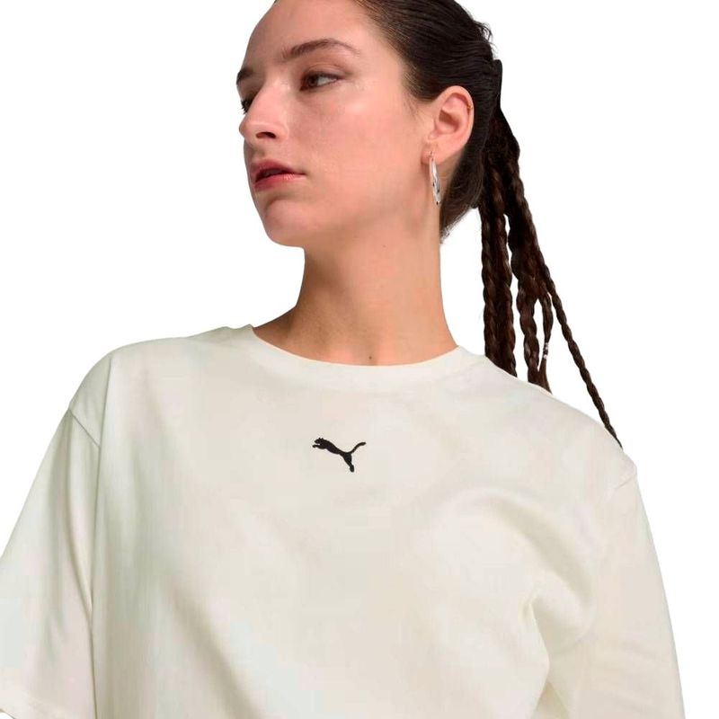 Entregue-se a vibrações leves e cheias de estilo com a Camiseta Puma ESS Relaxed Feminina. Com caimento relaxado, ombros caídos e tecido jersey simples, ela oferece conforto absoluto para dias tranquilos, passeios casuais ou aventuras espontâneas. O visual minimalista é realçado pelo bordado sutil do logotipo do gato PUMA no peito, garantindo autenticidade e elegância discreta. Produzida com pelo menos 20% de algodão reciclado, combina sustentabilidade e estilo moderno em uma peça versátil para qualquer look! 100% algodão; Caimento relaxado; Comprimento regular.
