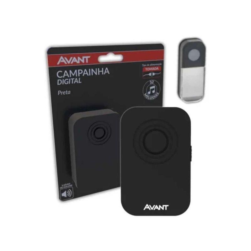 Campainha Digital Sem Fio Bivolt - Preta - AvantCampainha Digital Sem Fio Bivolt - Preta - TramontinaCampainha Digital Tomada sem Fio Bivolt Preta AVANTA Campainha Digital é perfeita pela sua praticidade de instalação pois não é necessário ter fiação elétrica para conectar o receptor ou transmissor. Indicado para casas, lojas, salões de beleza, clínicas e hotéis. Produto na cor branca, com alimentação via tomada. O alcance do transmissor é de até 75 metros em área livre, com 32 melodias e 3 níveis de volume. Possui tecnologia sem fio, com instalação Plug & Play.Dados TécnicosCor:PretaAlimentação:TomadaTensão:BivoltFator de Potência: =0,50Peso:0,114 kgMaterial:PolicarbonatoDimensões (Campainha com Tomada) (AxLxC):102 mm x 66 mm x 63 mmDimensões (Transmissor) (AxLxC):90 mm x 34 mm x 20 mmGarantia:12 meses** Preço do produto em PC **