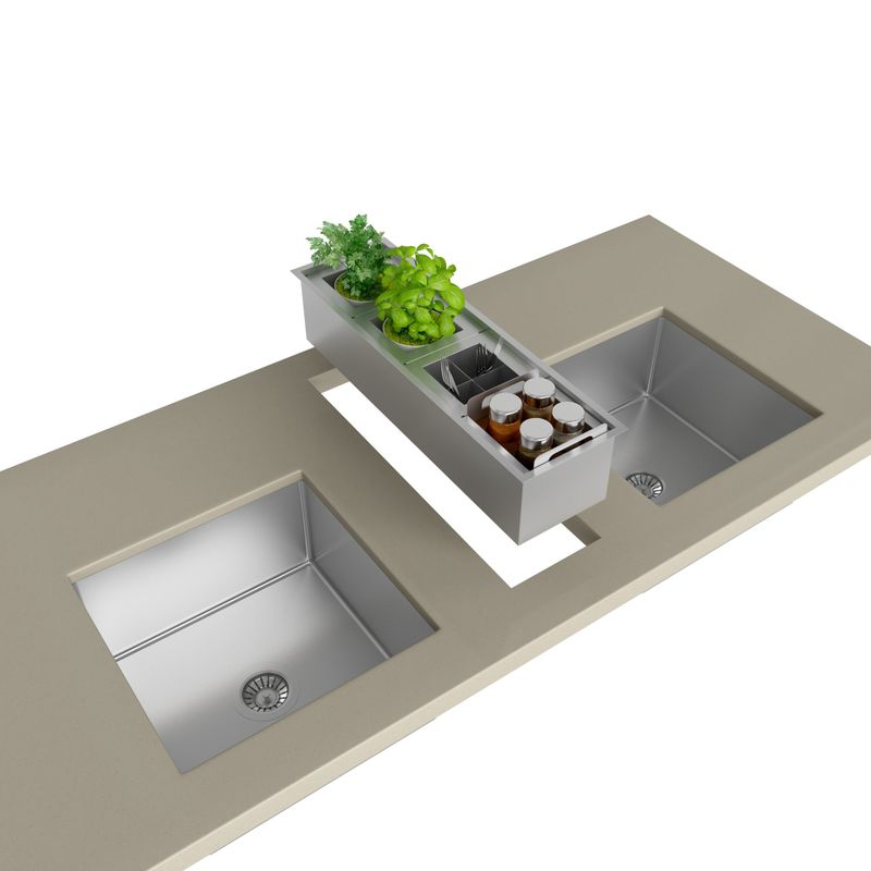 O CANAL ORGANIZADOR ÚMIDO 600 é um item indispensável para quem gosta de organização na cozinha. Ele serve como apoio para secar pratos, copos, talheres, organizar condimentos e ainda para os amantes de mini horta, ele se torna prático ao possibilitar armazenar os potes com ervas frescas (ACESSÓRIOS VENDIDOS SEPARADAMENTE). Possui válvula para escoamento da água, facilitando a higienização. O CANAL ORGANIZADOR ÚMIDO 600 tem 60 cm é ideal para cozinhas com bancadas menores. - Diferenciais: • ACESSÓRIOS VENDIDOS SEPARADAMENTE;• Instalação Undermont;• Pode ser instalado em granito, corian, silestone ou demais superfícies;• O canal pode ser instalado linear à cuba ou um nível acima;• Necessário considerar os aspectos do móvel e buscar orientação profissional;• Proporciona melhor aproveitamento da bancada, criando novo layout em sua cozinha;• Possibilidade de escolha de diferentes acessórios que se movimentam pelo canal, oferecendo flexibilidade em suas posições;• Profundidade de 140 mm (considerar mais o espaço da válvula e sifão). - Especificações: • REFERÊNCIA: 20.03.10600• COMPRIMENTO EXTERNO: 63CM• LARGURA EXTERNA: 19CM• COMPRIMENTO INTERNO: 61CM• LARGURA INTERNA: 16CM• ACABAMENTO: AÇO ESCOVADO • ESPESSURA DO AÇO: 1.0 MM• INSTALAÇÃO: UNDERMOUNT• PROFUNDIDADE: 140 MM• FURO VÁLVULA: 4.1/2