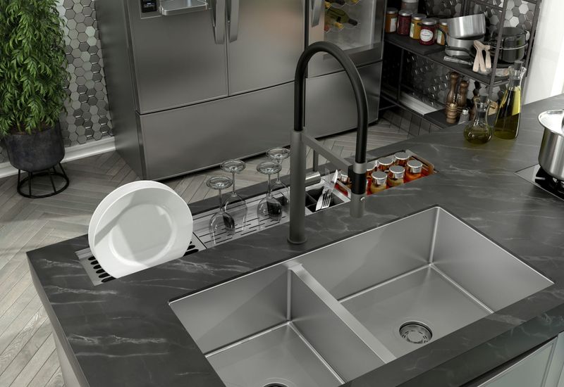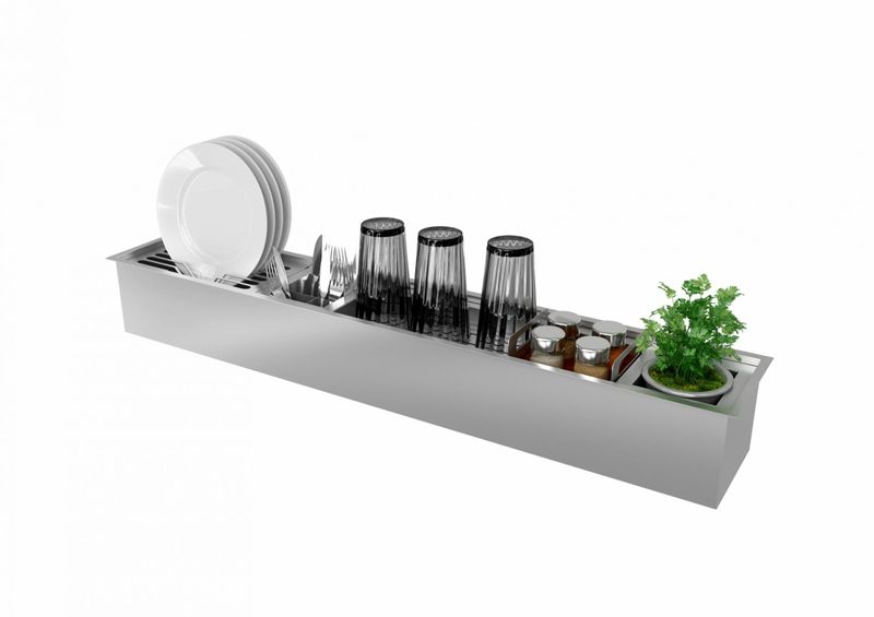 O CANAL ORGANIZADOR ÚMIDO 1050 é o grande diferencial nas cozinhas modernas, principalmente para quem busca praticidade e a organização que ele proporciona. Os utensílios podem ficar secando no canal organizador já que estão disponíveis diferentes acessórios que comporta cada item. Assim além de manter a cuba livre, há também economia de tempo já que não tem necessidade de seca-las. Dentre os diferentes acessórios (vendidos separadamente), estão o porta condimentos e o porta mini horta, possibilitando guardar condimentos e cultivar ervas frescas. - Diferenciais: • ACESSÓRIOS VENDIDOS SEPARADAMENTE;• Instalação Undermont;• Pode ser instalado em granito, corian, silestone ou demais superfícies;• O canal pode ser instalado linear à cuba ou um nível acima;• Necessário considerar os aspectos do móvel e buscar orientação profissional;• Proporciona melhor aproveitamento da bancada, criando novo layout em sua cozinha;• Possibilidade de escolha de diferentes acessórios que se movimentam pelo canal, oferecendo flexibilidade em suas posições;• Profundidade de 140 mm (considerar mais o espaço da válvula e sifão). - Especificações: • REFERÊNCIA: 20.03.10800 - MEDIDAS EXTERNAS: • LARGURA: 108cm• COMPRIMENTO: 19CM - MEDIDAS INTERNAS: • LARGURA: 106cm• COMPRIMENTO: 16cm • ACABAMENTO: AÇO ESCOVADO• ESPESSURA DO AÇO: 1.0 MM• INSTALAÇÃO: UNDERMOUNT• PROFUNDIDADE: 14cm• FURO VÁLVULA: 4.1/2