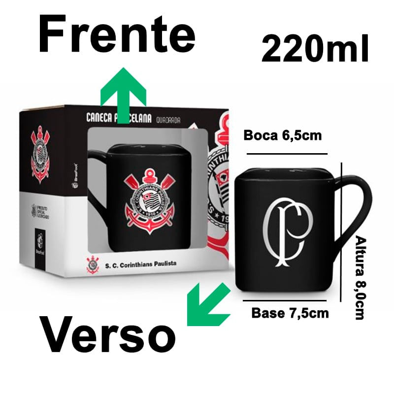 Você é do café ou chá? Não importa, o que importa de verdade é sempre manter o estilo na hora de tomar a sua bebida preferida. A CANECA PORCELANA QUADRADA são fabricadas em porcelana de alta qualidade que garante maior durabilidade durante seu uso.Elas são um item essencial em qualquer café-da-manhã ou lanchinho no meio da tarde e faz esse momento ficar ainda mais especial, com muito estilo e um formato diferenciado que vai deixar a sua bebida mais ousada.Caneca Porcelana Quadrada BrasFoot Corinthians 220 ML Licenciada PretoTodas as informações divulgadas são de responsabilidade do fabricante/fornecedor.Marca: BrasFootClassificação: Caneca Quadrada TimesMaterial: Porcelana PremiumConteúdo e Medidas: Caneca De Porcelana Quadrada - Brasao - Corinthians - 01 Peça.Tamanho Aproximado( Boca Ø 6,5cm - Altura 8,0cm - Base 7,5cm)Capacidade: 220mlA caneca vai em uma caixa Litografada personalizada e é um Produto Oficial licenciado.Observações:Lavar com detergente neutro, esponja macia e secar imediatamente.Não colocar em máquina de Lava-louças.Cuidados: Nao Utilizar produtos quimicos ou abrasivos .Impactos podem danificar o produtoProduto Original Oficial Licenciado por BrasFootColeção / Sortimento: Clubes de FutebolEstampada: SimCor: PretoReferencia: 12804Código de Barra: 7899790271331Garantia(Fabricante): Contra Defeito de FabricaçãoImagens Meramente IlustrativasINFORMAÇÕES IMPORTANTES: Item composto apenas por 01 Caneca em Porcelana Quadrada, os demais itens são meramente decorativos e NÃO fazem parte do conteúdo da embalagem.Aviso : - Todas as medidas são valores aproximados e podem sofrer alguma variação.- As cores podem sofrer uma pequena variação, dependendo do lote do produto e das configurações do seu computador.