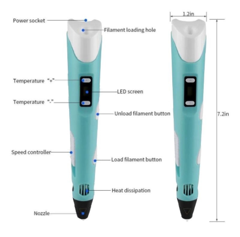 nome do produto: caneta de impressão 3d Características do produto: impressão de alta temperatura de pintura 3D, com exibição de temperatura Especificações: Incluindo caneta, adaptador, manual Uso do produto: usado para pintura e impressão tridimensional 3D infantil, para usar a imaginação, pintar livremente Material de mercadoria: use consumíveis ABS e PLA, materiais ecológicos, de acordo com os padrões nacionais de teste As canetas de impressão 3D são as perfeitas presente para crianças para ajudar a inspirar criatividade, design, planejamento, construção e compreensão espacial. É também um brinquedo educativo para pais e filhos se divertirem juntos. basta ligar, aquecer e apertar para começar seu diário! Ótimo para iniciantes e entusiastas de impressão 3D experientes! O filamento é aquecido pelo corpo da caneta e resfriado antes de sair do bico, tornando-o seguro para o uso das crianças. Nossa caneta recém-projetada também possui uma função de suspensão automática. nossas canetas 3D são compatíveis com PLA e ABS. Nome: caneta de impressão 3D Modelo: P62-2 Peso líquido: 60g Dimensões: 190x30x45mm Temperatura de impressão: 160-230 C Condições de trabalho: 10-35 C Idade aplicável: 10 anos de idade e acima do display LED, ajuste a temperatura a qualquer momento e crie mais rápido; Retorno/descarga de uma tecla, a operação é simples e rápida e é mais conveniente para as crianças usarem; Regulação de velocidade de uma tecla, quando em uso, deslize o botão para cima e para baixo para ajustar a velocidade de descarga; Cabeça de caneta recém-atualizada, design incorporado mais seguro, cuidado extra.