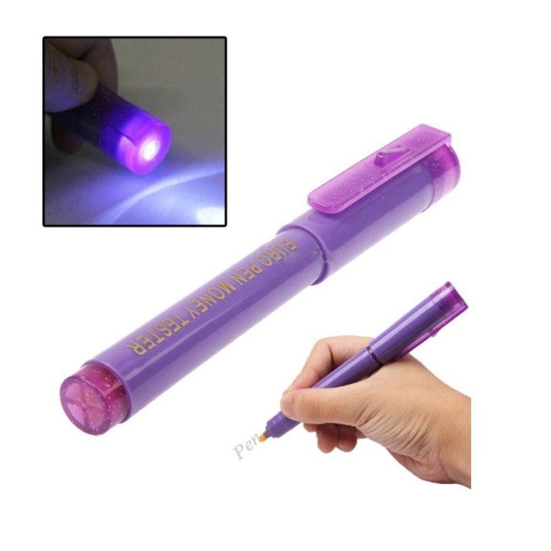 Caneta Detectora De Nota Falsa Led Uv Identificador Detector De Cheque Selo Ultravioleta A Caneta Detectora é uma caneta que detecta dinheiro falso instantaneamente.Garanta-se já com a proteção de Caneta Detectora e não receba dinheiro falso nunca mais.É o método mais prático, discreto, eficiente e econômico que apresenta resultados imediatos na identificação de Dinheiro falso.Super fácil de usar, basta passar sobre a nota e a reação química é imediata.Seu composto químico exclusivo faz com que seja um método de controle eficaz que não produz dano as cédulas. Funciona em qualquer tipo de papel moeda nacional e estrangeiro. Reais, Dólares, Euros, etc.Com a Mini Lanterna de Luz Ultra Violeta você é capaz de detectar dinheiro falso, pois ela ressalta as marcas d´agua em notas de dinheiro e cartões de credito. Modo de Uso da Caneta:1- Com a caneta em mãos, faça um X (xis) ou um (traço) na nota (cédula).2- Se a marcação da nota (cédula) ficar com a cor amarelo brilhante, sua nota é verdadeira e portanto válido!3- Se a marcação da nota (cédula) ficar com a cor escura, sua nota é falsa!4- A marcação desaparece novamente depois de algumas horas.