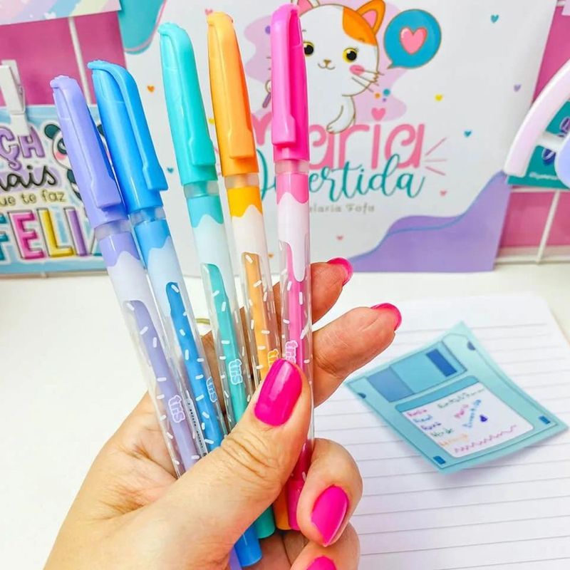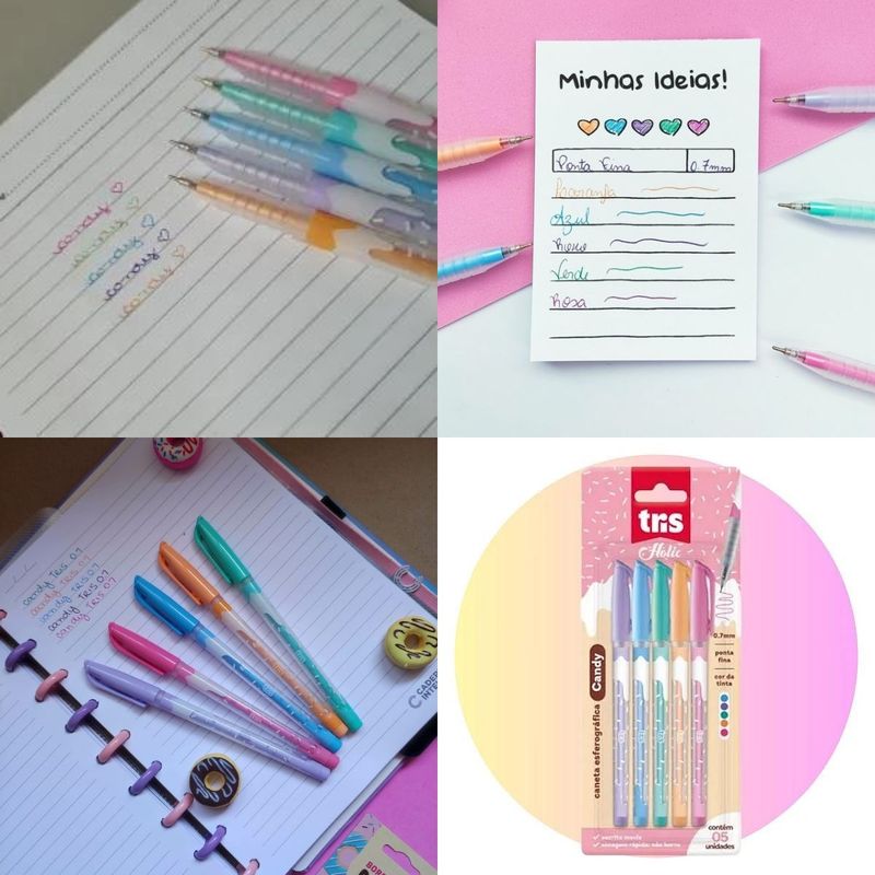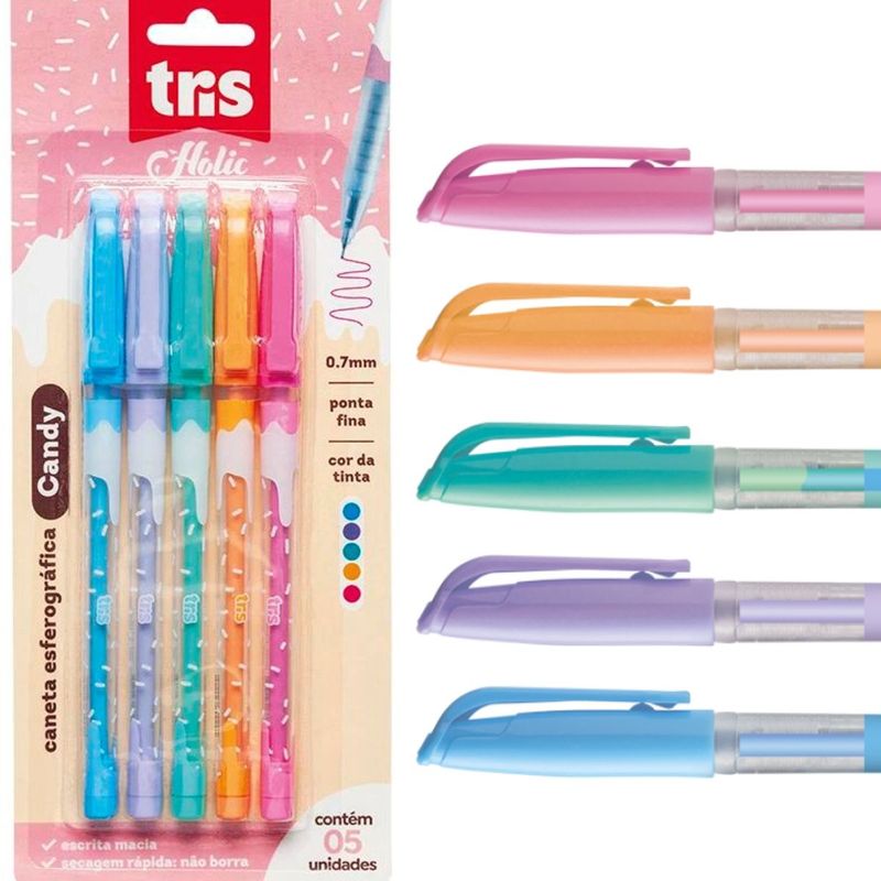 CANETA ESFEROGRÁFICA HOLIC FOFURICES CANDY - CARTELA COM 5 UN - TRIS Tudo de mais fofo é o que você vai ver por aqui: comidinhas, arco-íris e os bichinhos mais requisitados! A linha Holic Fofurices veio para deixar o seu estojo ainda mais lindo. A caneta Candy possui estampas divertidas em lindas cores fashion para você escolher! Conta com escrita macia e secagem rápida em ponta fina 0.7mm. Compisição: Resinas termoplásticas, corantes, solventes e metal. INMETRO: OCP0098 REGISTRO: 004316/2022