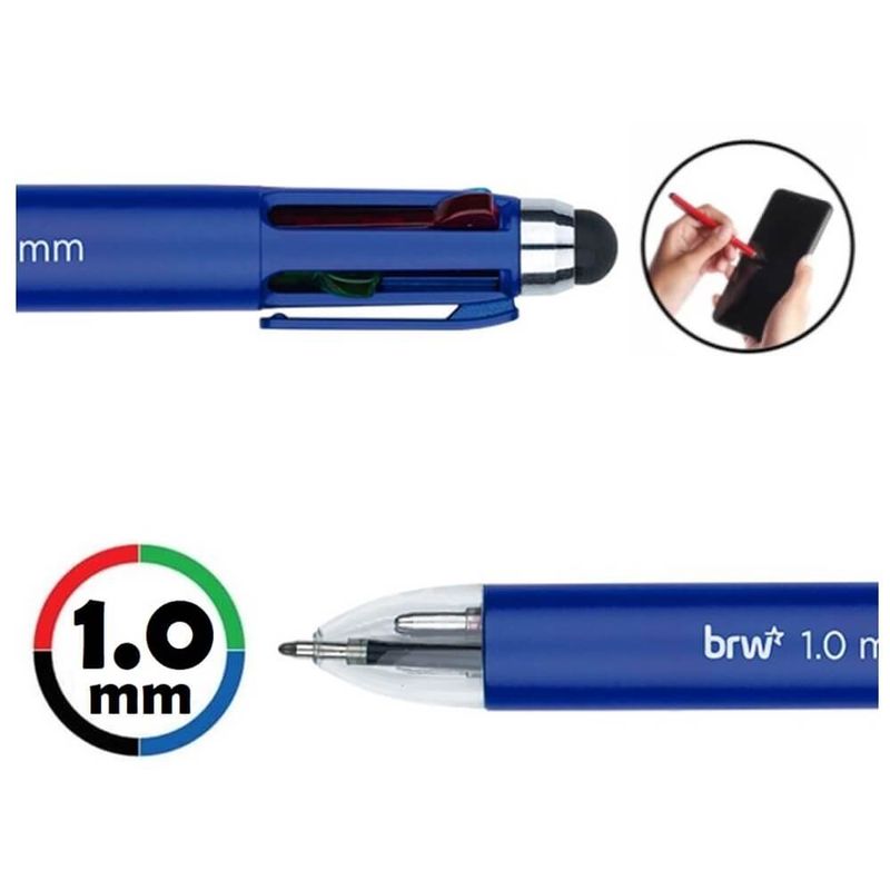 Caneta Esferográfica Mini 4X1 Retrátil 1.0mm com 4 Cores - BRW Essa caneta foi desenvolvida para trazer praticidade e versatilidade na hora de escrever: são 4 cores em uma única caneta, além do touch para ser usado em tablets e celulares. É perfeita para uso na escola, em casa ou no trabalho. Detalhes - Ponta: 1.0MM - Design elegante e sofisticado- Clip para fixação- Mecanismo retrátil: basta escolher a cor e clicar- Tinta nas cores: azul escuro, preto, vermelho e verde- Altura: 11,7cm Embalagem com 01 unidade Imagens meramente ilustrativas, as cores podem variar em cada tela ou monitor.