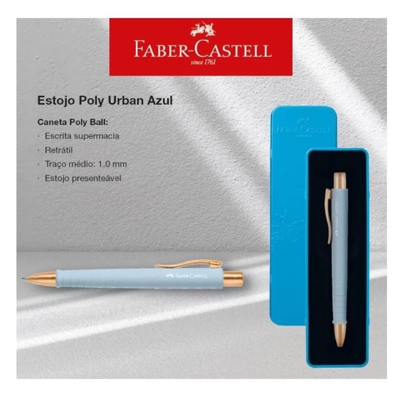 Caneta Esferográfica Poly Ball Urban 1.0mm Azul Gold - Faber-Castell Para quem valoriza a praticidade e o conforto na escrita, mas também não abre mão de um visual moderno, agora temos mais uma opção para te acompanhar: A Caneta Poly Ball Urban Azul Gold! Com uma caneta esferográfica retrátil, esse conjunto oferece uma escrita supermacia e confortável, o traço médio de 1.0mm proporciona fluidez e clareza em cada palavra escrita, tornando suas anotações ainda mais agradáveis. O estojo, assim como a caneta, vem em uma elegante cor azul, complementando um visual moderno e refinado. A lata não só protege sua caneta, mas também adiciona um toque de sofisticação ao seu material de escrita, tornando este conjunto uma excelente opção para presente ou para uso pessoal. Conteúdo da embalagem: - 01 Lata na cor azul - 01 Caneta Poly Ball 1.0mm: retrátil e com escrita super macia, traço médio, tinta azul; Imagens meramente ilustrativas, as cores podem variar em cada tela ou monitor.