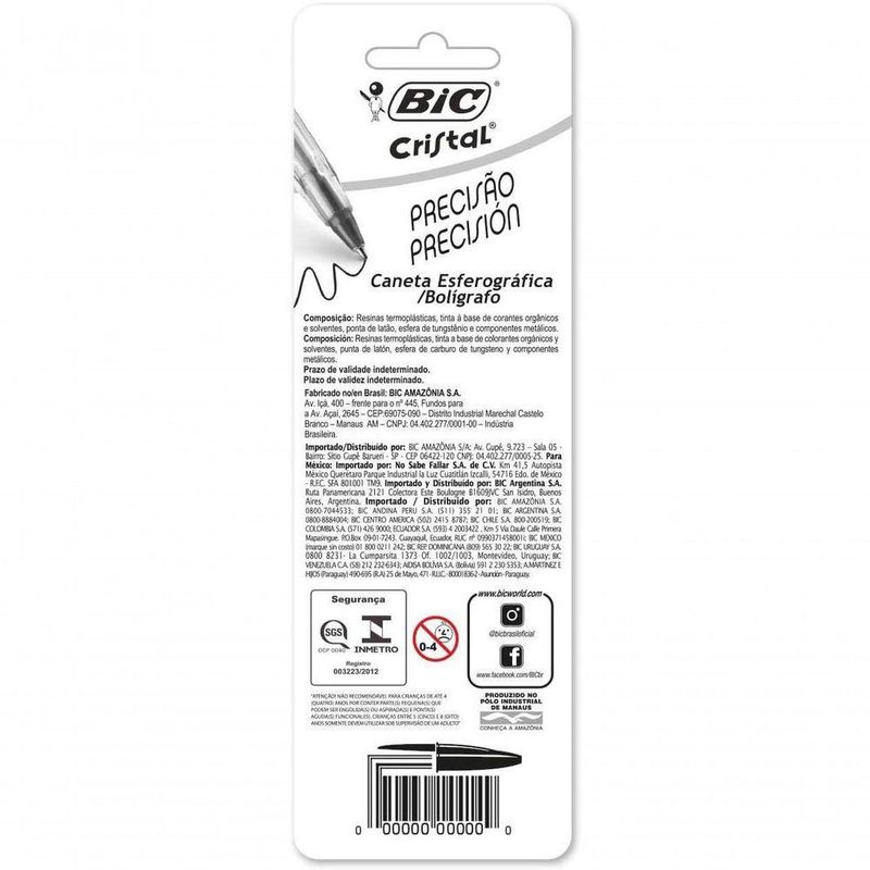 Caneta Esferográfica Ponta Fina De 0.8mm Pacote Com 3 Unidades BicCaneta Esferográfica Clássica - Alta Durabilidade e ConfortoA Caneta Esferográfica Clássica é a escolha favorita de milhares de lares, escritórios e escolas ao redor do mundo. Projetada para proporcionar conforto e eficiência, ela é perfeita para quem busca praticidade e qualidade na escrita diária.BenefíciosDurabilidade Excepcional: Escreve até 2 km sem falhas, ideal para longos períodos de uso.Escrita Suave: Tinta de alta qualidade que seca rapidamente, evitando borrões.Segurança e Sustentabilidade: Fabricada com a quantidade ideal de matéria-prima, sem PVC, garantindo segurança e respeito ao meio ambiente.Visibilidade Prática: Corpo transparente que permite monitorar o nível de tinta.CaracterísticasDesign Ergonômico: Corpo hexagonal que proporciona conforto e estabilidade durante o uso.Ponta Resistente: Esfera de tungstênio altamente durável e precisa, perfeita para uma escrita consistente.Tampa Ventilada: Conformidade com o padrão ISO, garantindo segurança em casos de uso infantil.Variedade de Cores: Disponível com tampas e tintas coloridas, facilitando a identificação.Especificações TécnicasMaterial: Livre de PVC.Comprimento de Escrita: Até 2 km.Ponta: Esfera de tungstênio.Design: Corpo hexagonal transparente.Detalhes da EmbalagemEmbalagem resistente, ideal para transporte seguro.Informações detalhadas sobre uso e características do produto.
