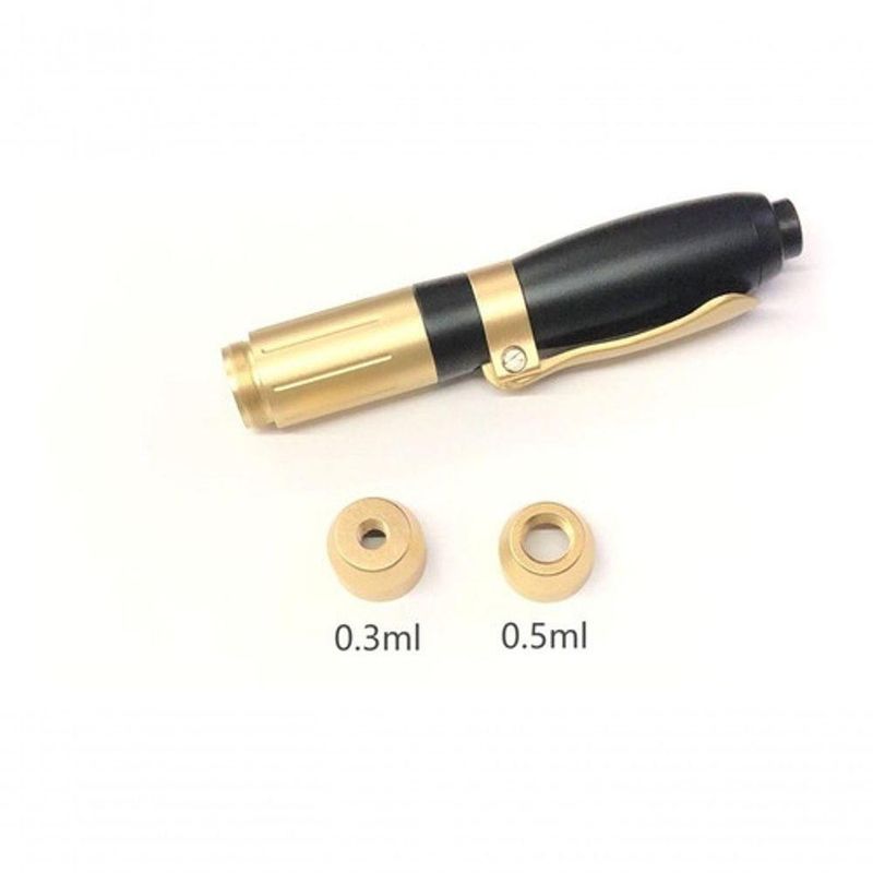 Caneta Pressurizada De Alta Pressão 2 Em 1 Metal* Remoção de vasos sanguíneos, rejuvenescimento da pele, olheiras, removedor de rugas, , hidratante, clareamento, hidratante.* Material: aço inoxidável 316 (aço inoxidável médico )* Volume de injeção: - * Modo de operação: Atomização de alta pressão* Profundidade de injeção: 6-15 mm* Cor: champanhePrincípio da Operação:Mola e pistão, que permitem, sob pressão, injetar de maneira rápida e uniforme sob a pele através de um orifício com diâmetro de 0,1 mm, que é duas vezes menor que a espessura da agulha para injeção!Com a ajuda da energia de ação mecânica, a mola e o pistão especial no aparelho permitem, sob pressão, empurrar rápida mas suavemente o fluxo do através de um orifício microscópico para o tecido subcutâneo.Os medicamentos são absorvidos muito melhor e mais rápido do que com a introdução da agulha, o que foi confirmado em uma série de estudos e testes realizados em diversos países do mundo.A solução ideal para pessoas com tendência a cicatrizes e coágulos subcutâneos.Vantagens da caneta pressurizada:* Injeção indolor* A injeção sem agulha elimina o risco de infecção da agulha* Não deixa cicatrizes e marcas de punção do tecido âneo com agulha* Absorção melhor e mais rápida de medicamentos* Injeção estritamente subcutânea - eliminando o risco de da no músculo* Rápido, fácil e * Dosagem separada e econômica do CONTÉM:1 x caneta pressurizado1 x cabeça de 0,3ml1 x cabeça de 0,5mlNÃO ACOMPANHA OS CARTUCHOS DE 0,3ML E 0,5ML!!PRONTA .