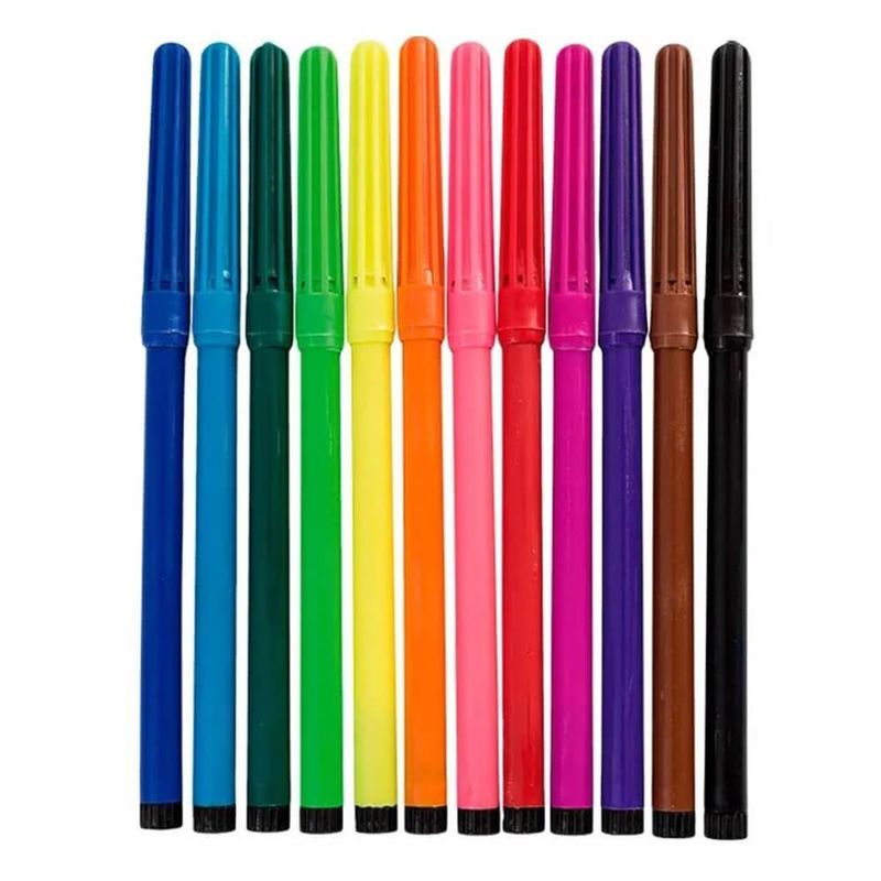 Canetinha Hidrográfica com 12 Cores (Ref. CA8001) - BRW A Canetinha Hidrográfica da BRW possui cores vivas e vibrantes, excelente para escrever, desenhar, pintar, não mancha as roupas e sai facilmente da pele, são super-resistentes e as pontas não achatam ou afundam durante seu uso. Detalhes: - Escrita de 8mm - Formato redondo- Lavável - Ponta de fibra de poliéster- A cor do corpo indica a cor da tinta- Maior durabilidade- Atóxica - Ideal para atividades que estimulam a criatividade Embalagem com 12 cores Imagens meramente ilustrativas, as cores podem variar em cada tela ou monitor.