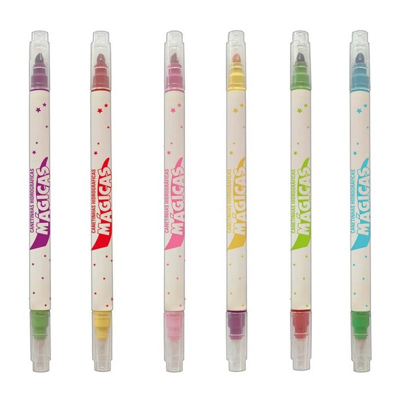 Canetinha Hidrográfica Mágica 6 Cores - Tilibra A Caneta Hidrográfica Mágica traz à possibilidade de combinações de cores, deixando a escrita muito mais divertida e mágica, além de ter um traço macio e tinta de qualidade com secagem rápida.Produto Certificado INMETRO (Artigo Escolar/Segurança) - Registro 002072/2022 Embalagem com 12 coresImagens meramente ilustrativas, as cores podem variar em cada tela ou monitor.