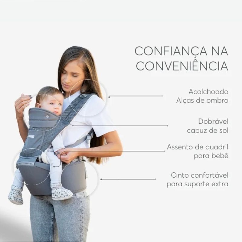 Canguru 3 em 1 Chloe Mesh Bege - KikkaBoo CANGURU 3 EM 1 CHLOE Oferece até oito posições e combinações de transporte em três modos: • virado para dentro a partir de 5 meses, ideal para nutrir a proximidade; • virado para frente a partir de 5 meses para interagir com o mundo; • carregado nas costas a partir de 6 meses para explorar aventuras à medida que crescem. Projetado para conforto : Possui um cinto largo e assento para quadril que distribuem uniformemente o peso do bebê, juntamente com alças de ombro acolchoadas ajustáveis para suporte extra. Tecido respirável e leve: Feito de 100% poliéster e material de malha respirável para garantir que seu bebê se sinta confortável e relaxado. Idade Recomendada: Adequado para crianças com mais de 5 meses (até 15 kg) Produto 3 em 1 suporte macio, assento de quadril ou acoplado como suporte com assento de quadril 8 posições de transporte Sim incluindo transporte traseiro por mais de 6 meses Cinto largo ajuda a distribuir uniformemente o peso do bebê pelo corpo dos pais Alças largas acolchoadas ajustáveis Capota solar desmontável Bolso frontal adicional Composição Material em malha respirável / 100% poliéster Cinto adicional evita que as alças deslizem
