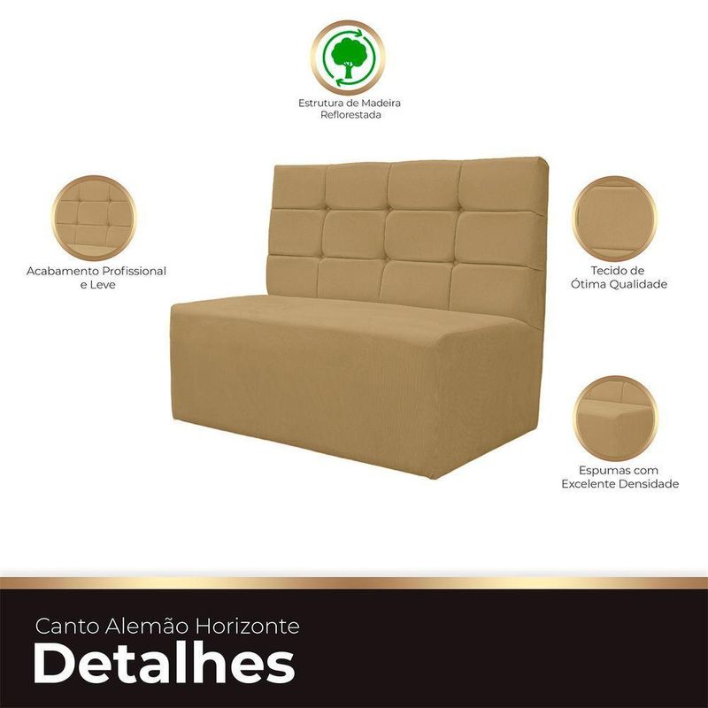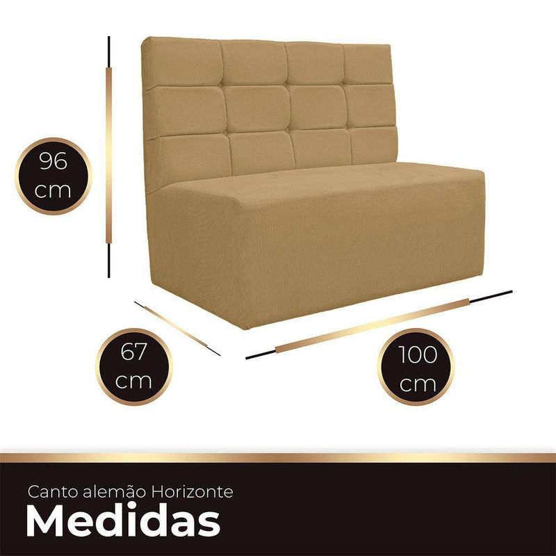 Canto Alemão Confortável Para Apartamento Cozinha E Restaurantes Veludo Bege EscuroExplore um novo patamar de elegância com o Canto Alemão, uma peça estilosa, moderna e romântica, perfeita para otimizar espaços em apartamentos, cozinhas e restaurantes. Seu estofado confortável transforma qualquer ambiente em um convite ao relaxamento. Invista nesse móvel que une estilo e funcionalidade de maneira única, tornando cada momento ainda mais especial. Transforme seu espaço com a modernidade e charme do Canto Alemão.ESPECIFICAÇÕESEn;Revestimento: Tecido Veludo;Espuma: de alta densidade;DIMENSÕES DO CANTO ALEMÃOAltura total: 96cm;Largura total: 100cm;Profundidade total: 67cm;Peso: 16kg.A GARANTIA É DE FÁBRICA, mas também uma garantia que reflete nossa confiança no que fazemos.Ao escolher comprar conosco, você recebe não apenas um produto excepcional, mas também a tranquilidade de saber que estamos ao seu lado. Se, por qualquer motivo, seu produto apresentar algum problema nos próximos noventa dias, como fabricantes, estamos aqui para oferecer total assistência.Nossa prioridade é garantir que sua experiência de compra seja não apenas satisfatória, mas excepcional. Queremos que você tenha a certeza de estar negociando com uma empresa que valoriza, acima de tudo, a confiança mútua com seus clientes. Sua satisfação é a nossa maior recompensa.CUIDADOS COM A LIMPEZAUtilizar um pano limpo e seco. Não limpar com produtos abrasivos ou escovas. Não deixar exposta à luz do sol diretamente pois isso irá diminuir a vida útil do produto, fazendo-o envelhecer precocemente. Este produto não é recomendado para ambientes externos onde possa receber chuva.MONTAGEM- O Canto alemão chegara montado.INFORMAÇÕES IMPORTANTES- Todos os produtos vão embalados com total segurança;-;- Objetos decorativos que aparecem na foto não acompanham o produto;- Pode haver alguma diferença de tonalidade entre a imagem e o produto real, por conta do tratamento de imagens e a calibração de cores do seu monitor;- Por se tratar de estofado as medidas podem ter uma pequena variação em até 3 cm;- Confira as dimensões do produto e certifique-se de que passará normalmente por supostos elevadores, portas, escadas e/ou corredores de sua residência, ;- Havendo despesas adicionais, serão de responsabilidade do cliente.