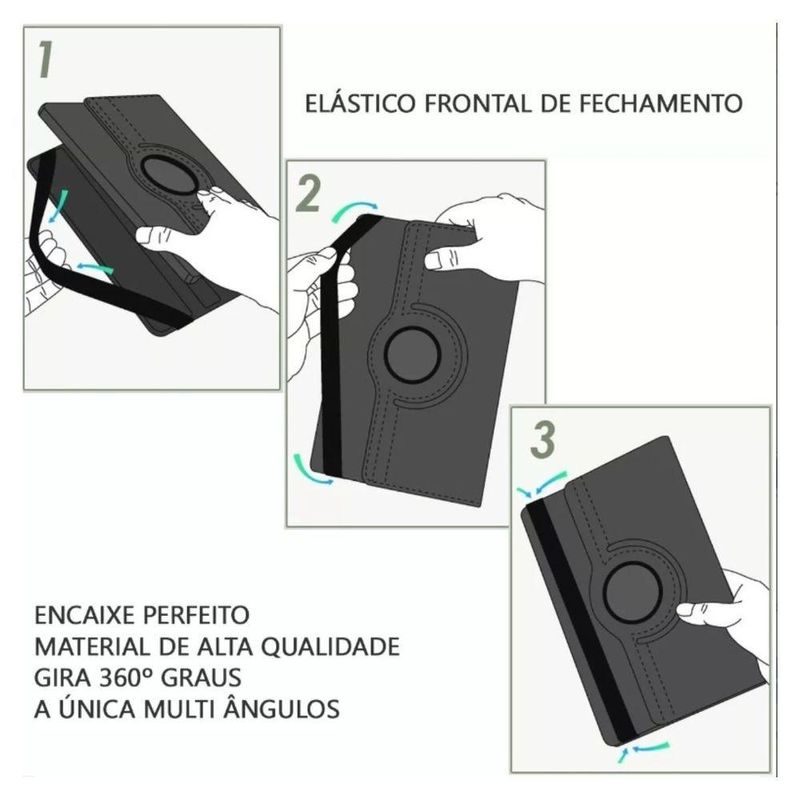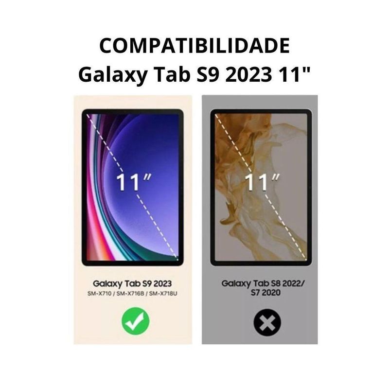 Capa Para Tablet S9 Tela 11" Polegadas Giratoria 360 GrausCapa Giratória 360º para Tablet Samsung Galaxy Tab S9 de 11 PolegadasProteja e aproveite ao máximo seu tablet com nossa capa giratória de alta qualidade, projetada especificamente para o Samsung Galaxy Tab S9 de 11 polegadas.Recursos:- Material Premium: Fabricada em couro sintético (PU) de alta qualidade, nossa capa oferece durabilidade e elegância.- Design Giratório 360º: Desfrute da flexibilidade de visualizar seu tablet em múltiplos ângulos de visão, seja na vertical ou na horizontal, para uma experiência de visualização confortável em qualquer -situação.- Proteção Reforçada: As bordas reforçadas anti-impacto oferecem proteção adicional contra quedas acidentais, arranhões e sujeira, mantendo seu tablet em perfeitas condições.- Acesso Conveniente: Todos os botões e portas permanecem facilmente acessíveis, permitindo que você assista a vídeos, carregue seu dispositivo e conecte fones de ouvido sem remover a capa.Compatibilidade:- com o Tablet Samsung Galaxy Tab S9 de 11 polegadas (modelo SM-X710).Observação: Não é Galaxy Tab S8 2022/S7 2020 11 e :- Garantimos o do produto em até 24 horas, acompanhado de , para que você receba exatamente o que comprou e possa desfrutar de sua capa giratória sem demora.- Proteja seu investimento e eleve sua experiência com a capa giratória 360º para o Samsung Galaxy Tab S9. Adquira a sua hoje mesmo!Conteúdo da Embalagem:1 Capa para o Tablet Galaxy Tab S9 de 11 polegadas