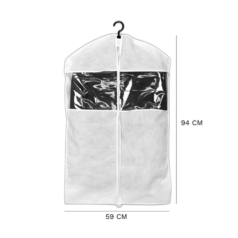 Capa Protetora para Terno e Roupas com Visor Premium 59 x 94 cm Detalhes do Produto: Proteja as suas roupas da umidade, poeira e insetos com a Capa Protetora. Com ela, você conserva limpos e passados os seus ternos e outras peças de roupas, como jaquetas, casacos, camisas, blazer, saias e calças. Feita em TNT, material que permite a entrada e saída de ar e evita a umidade, possui amplo visor em plástico transparente que facilita a identificação das peças armazenadas. Além disso, conta com uma abertura para o cabide na parte superior, possibilitando que você pendure a peça, e zíper ao longo de toda a frente da capa. Seu acabamento é refinado e resistente, sendo também ideal para viagens e transporte de peças mais delicadas. *OBS: O produto não acompanha o cabide, apenas ilustrativo. Cuidados: Lavagem à mão. Não passar a ferro. Não secar na secadora. Não limpar a seco com químicos. Material: TNT e PVC Medidas: 59 cm largura x 94 cm altura Itens inclusos: 1 unidade da Capa Protetora para Terno e Roupas com Visor Premium 59 x 94 cm Garantia do fornecedor: 3 meses