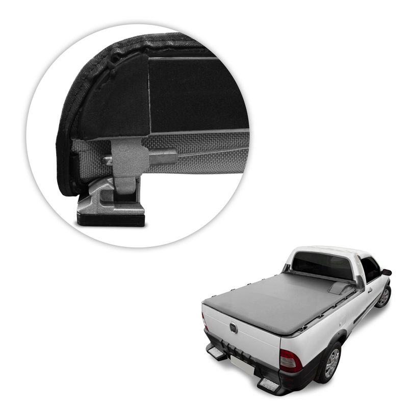 Capota Maritima Strada CS 1998 a 2013 Slim Eco A capota marítima Slim Eco, foi desenvolvida sob medida para você que procura transportar cargas, sua função vai muito além da estética, tendo como objetivo proteger do clima e assim evitando possíveis danos aos objetos carregados no interior da caçamba. Desenvolvido pela Flash Cover, fabricante com referência nacionalmente conhecida pela sua qualidade em fabricação de acessórios automotivos de alto padrão. Estrutura e sistema de travas fabricadas em alumínio injetado com encaixe trek, Sargentos em Pvc injetado super resistente,acompanha varetas transversais, mantendo a lona esticada para que não haja acúmulo de água, acabamento debrum de lona em trama de 6X6 e tensores destacáveis para maior praticidade em seu manuseio, além de possuir puxador para facilitar a abertura da capota. Instalada sobre a caçamba da pick up, utilizará furação original do veículo, sem demanda de novos furos ou adaptações para fixação do produto, sendo um acessório de modelo inigualável, de modo que não interfira na originalidade do seu veículo. Especificações Técnicas: Estrutura E Travas Em Alumínio Injetado Lona Fabricada Em Trama 6X6 Sistema Prático De Abertura Acompanha Kit Instalação Acabamento Com Debrum Tensores Destacáveis Reforçada No Encaixe Excelente Vedação Modelo Inigualável Sargento em Pvc Injetado Encaixe Trek Modelo Slim Eco Cor Preto Tabela de Aplicação: Fiat Strada 1998 Strada 1999 Strada 2000 Strada 2001 Strada 2002 Strada 2003 Strada 2004 Strada 2005 Strada 2006 Strada 2007 Strada 2008 Strada 2009 Strada 2010 Strada 2011 Strada 2012 Strada 2013 Compatível somente com a versão Cabine Simples, Sem Grade Com Gancho estepe.