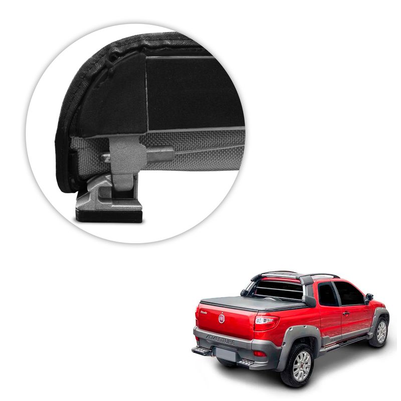 Capota Maritima Strada Adventure CE 2014 a 2020 Flash Force A capota marítima Flash Force, foi desenvolvida sob medida para você que procura transportar cargas, sua função vai muito além da estética, tendo como objetivo proteger do clima e assim evitando possíveis danos aos objetos carregados no interior da caçamba. Desenvolvido pela Flash Cover, fabricante com referência nacionalmente conhecida pela sua qualidade em fabricação de acessórios automotivos de alto padrão. Estrutura e sistema de travas fabricadas em alumínio injetado com encaixe trek, acompanha varetas transversais, mantendo a lona esticada para que não haja acúmulo de água, acabamento debrum de lona em trama de 8x8 e tensores destacáveis para maior praticidade em seu manuseio, além de possuir puxador para facilitar a abertura da capota. Instalada sobre a caçamba da pick up, utilizará furação original do veículo, sem demanda de novos furos ou adaptações para fixação do produto, sendo um acessório de modelo inigualável, de modo que não interfira na originalidade do seu veículo. Especificações Técnicas: Estrutura E Travas Em Alumínio Injetado Lona Fabricada Em Trama 8x8 Sistema Prático De Abertura Acompanha Kit Instalação Acabamento Com Debrum Tensores Destacáveis Reforçada No Encaixe Excelente Vedação Modelo Inigualável Encaixe Trek Modelo Flash Force Cor Preto Tabela de Aplicação: Fiat Strada 2014 Strada 2015 Strada 2016 Strada 2017 Strada 2018 Strada 2019 Strada 2020 Compatível somente com as versões Cabine Estendida Adventure Com estepe.