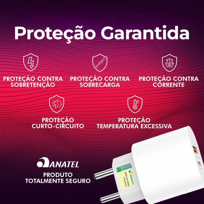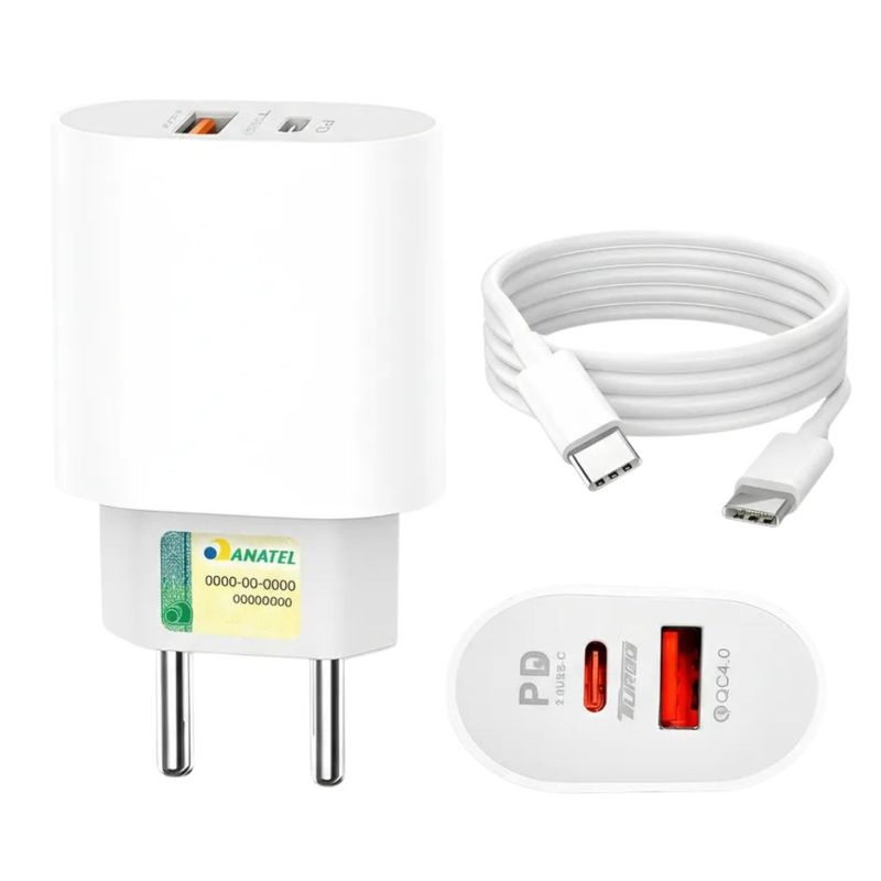 Código Anatel: 072062413363. Este carregador de 25W com duas portas USB Type-C é perfeito para famílias ou para quem possui mais de um dispositivo com esse padrão de conexão. Carregue seu smartphone, tablet ou qualquer outro aparelho com conector Type-C de forma rápida e segura. O carregador vem acompanhado de um cabo Type-C de alta qualidade que garante uma transferência de dados e carregamento estável. Sua estrutura robusta em branco proporciona durabilidade e elegância. Com sistema de proteção contra sobrecarga, você pode deixar seus dispositivos carregando sem preocupações.