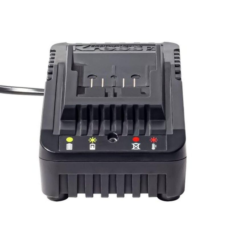 Carregador De Bateria Rápido Bivolt 20v Kress Kac21Carregador de Bateria Rápido Bivolt 20V Kress KAC21 - Carregador de Bateria Rápido Bivolt 20V Kress KAC21Características Gerais do Produto: - Modelo: KAC21 - Marca: Kress - Tensão: Bivolt - Especificações: Bivolt; Carregamento rápido; Bivolt, facilidade para usar em qualquer localidade; Cooler para refrigeração do motor; Contém luzes indicadores de carregamento; Corrente de carregamento: 6 Ah - Características: Tipo de célula: Li-íon; Tempo de carregamento: Aprox. 58 min - Garantia direto com o Fabricante: 1 Ano (12 meses) Garantia: - 1 ano de garantia direto com o fabricante