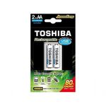 Carregador De Pilha Usb Tnhc-6gme2 Cb (c/2 Pilhas Aa 2000 Mah) ToshibaO Carregador de Pilha USB TNHC-6GME2 CB torna sua vida melhor e mais prática. O carregador de pilhas portátil da Toshiba carrega via USB até duas pilhas ao mesmo tempo nos formatos AA/AAA. É ideal para viagens, eventos, e onde for não vai se preocupar com gastos de pilhas, ou seja, pronto para usar a qualquer momento! Ele possui corte automático de energia e é de fácil utilização e conexão. Funciona através do computador, carregador de smartphone ou qualquer carregador USB regular com tomada para micro USB. Além disso, as pilhas recarregáveis TOSHIBA (Ni-Mh) oferecem conforto e desempenho robusto e duradouro. Elas são uma excelente escolha para dispositivos de média a alta capacidade, o que as tornam ideais para dispositivos digitais e de uso diário. Dependendo do uso e da aplicação, o ciclo pode atingir até 1.500 cargas/descargas. Eles são Pré-Carregada e pronta para uso, com baixa taxa de auto descarga. Cor:Branca Consumo de Energia:DC 5.0V/ 1.0A Dimensões:9.6 x 17.0 x 3.0 cm (L x A x P) Led:verde piscando: carregamento em progresso; Led verde fixo: carga completa. Conector:USB Pesquisa:carregador|de|pilha|usb|para 2|AA|AAA|min.2000mah|com 2|toshiba| A embalagem acompanha: - 1 carregador portátil USB; - 2 pilhas recarregáveis AA 2000 MAh; - 1 cabo USB; - 1 manual. Tempo de carga: - Modelo (Ni-Mh): AA - 2000mAh - 6.6 horas; - Modelo (Ni-Mh): AAA - 950mAh - 8 horas.O Carregador de Pilha USB TNHC-6GME2 CB torna sua vida melhor e mais prática. O carregador de pilhas portátil da Toshiba carrega via USB até duas pilhas ao mesmo tempo nos formatos AA/AAA. É ideal para viagens, eventos, e onde for não vai se preocupar com gastos de pilhas, ou seja, pronto para usar a qualquer momento! Ele possui corte automático de energia e é de fácil utilização e conexão. Funciona através do computador, carregador de smartphone ou qualquer carregador USB regular com tomada para micro USB. Além disso, as pilhas recarregáveis TOSHIBA (Ni-Mh) oferecem conforto e desempenho robusto e duradouro. Elas são uma excelente escolha para dispositivos de média a alta capacidade, o que as tornam ideais para dispositivos digitais e de uso diário. Dependendo do uso e da aplicação, o ciclo pode atingir até 1.500 cargas/descargas. Eles são Pré-Carregada e pronta para uso, com baixa taxa de auto descarga. Cor:Branca Consumo de Energia:DC 5.0V/ 1.0A Dimensões:9.6 x 17.0 x 3.0 cm (L x A x P) Led:verde piscando: carregamento em progresso; Led verde fixo: carga completa. Conector:USB Pesquisa:carregador|de|pilha|usb|para 2|AA|AAA|min.2000mah|com 2|toshiba| A embalagem acompanha: - 1 carregador portátil USB; - 2 pilhas recarregáveis AA 2000 MAh; - 1 cabo USB; - 1 manual. Tempo de carga: - Modelo (Ni-Mh): AA - 2000mAh - 6.6 horas; - Modelo (Ni-Mh): AAA - 950mAh - 8 horas.