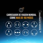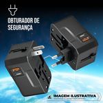 O Carregador e Adaptador Turbo Universal Power Delivery da Gshield é a solução completa para quem precisa carregar seus dispositivos de maneira rápida, segura e eficiente em qualquer lugar do mundo. Com um design compacto e recursos avançados, ele garante que seus aparelhos estejam sempre prontos para uso, independentemente da localização.Principais CaracterísticasProteção Avançada: Protege seus aparelhos contra picos de tensão e surtos elétricos, garantindo a segurança dos dispositivos conectados.Obturador de Segurança: Previne choques acidentais ao bloquear o acesso direto às partes energizadas.Luz Indicadora de Energia: Permite saber quando o carregador está em funcionamento com um simples olhar.Compatibilidade Internacional: Ideal para viajantes, o carregador pode ser usado em mais de 150 países, aceitando plugues de diversos formatos.Saída USB e Tipo-C: Equipado com portas USB-A e USB-C, permitindo carregar uma ampla gama de dispositivos com diferentes necessidades de conectividade.BenefíciosCarregamento Rápido: A tecnologia Power Delivery (PD) e Quick Charge (QC) garantem um carregamento eficiente e rápido para seus dispositivos.Versatilidade: Pode ser usado para carregar smartphones, tablets, laptops, câmeras e outros dispositivos eletrônicos.Segurança: Proteções integradas garantem a segurança dos seus dispositivos contra sobrecargas e picos de tensão.Conveniência para Viagens: Compatível com tomadas de mais de 150 países, é a escolha ideal para quem viaja frequentemente.O Carregador Turbo Universal Power Delivery da Gshield é a escolha inteligente para quem não abre mão de praticidade, segurança e eficiência no carregamento dos seus dispositivos, em qualquer lugar do mundo.ATENÇÃOCuidado: Esse produto não converte corrente elétrica. Você precisará de um conversor ou transformador para seu aparelho de tensão única.Importante: Não conecte mais de um plugue ao mesmo tempo ao usar o carregador.ESPECIFICAÇÕES Marca: Gshield Material: Policarbonato (PC) e ABS Entrada AC: 100-250V (AC), 50-60Hz, 0.6A Saída AC: 6A (Máx. 600W/110V ou 1380W/230V) Saída PD: 5V/3A, 9V/2A, 12V/1.5A (Máx. 20W) Saída USB: 5V/3A (Máx. 15W PD+QC: 5V/4A (Máx. 20W) Saída USB: 5V/3A (Máx. 15W)COMPATIBILIDADE Compatível com qualquer cabo de com saída USBITENS INCLUSOS 1x Carregador e Adaptador Universal Turbo DeliveryGARANTIA 3 meses contra defeitos de fabricação + Garantia Vitalícia Co-Participativa