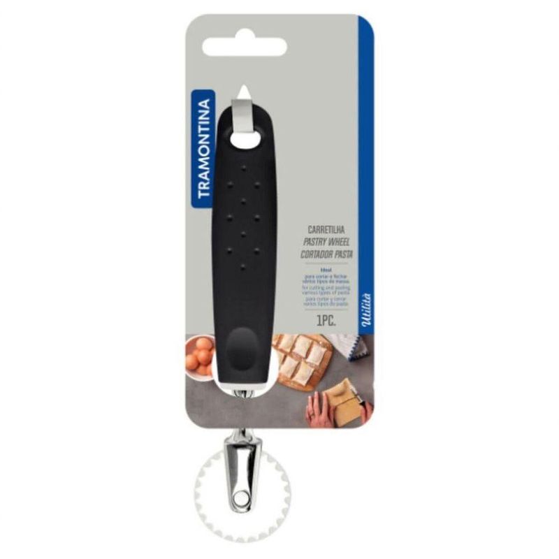 Carretilha Corta E Fecha Tramontina Utilitá Zamak Cromado PretaATramontina apresenta nessa linha uma grande variedade de acessóriospara cozinha, tudo para facilitar seu dia-a-dia. Utensílios práticos eque suportam altas temperaturas. Vai ser difícil resistir à beleza evariedade dessa linha.Recomendações de Uso:Antes do uso: Antes de utilizar o , remova as eventuais etiquetas e lave-o com água quente, detergente e enxugue-a de uso: Durante a lavagem use somente esponja macia, outros tipos de produtos, como palha de aço, poderão riscar ou prejudicar o brilho do produto. Enxágue bem a peça a fim de remover totalmente os resíduos dos produtos de limpeza, que por serem abrasivos, podem danificar o inox. Após a lavagem enxugue-o, pois as substâncias químicas contidas na água poderão causar manchas. Sempre que possível use água quente, pois renova o brilho do produto. Quando usar a máquina de lavar louça, recomendamos retirar o produto logo que tenha terminado o ciclo enxaguar, a fim de que o mesmo seja secado manualmente.- Foto meramente ilustrativa.- Embalagem litografada.Informações Adicionais:- Lâmina em aço cromado, que proporcionando maior durabilidade à peça.- Cabo com detalhe de apoio , proporcionando maior firmeza e ao manusear a peça.- Cabo em polipropileno. com furo passante para pendurar o utensílio.- Design moderno e Cores diferenciadas.- Permanece bonito por muito mais tempo.