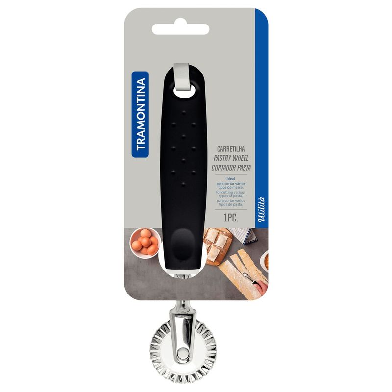 Com a Carretilha de Corte Tramontina Utilità em Zamak Cromado e Nylon com Cabo de Polipropileno Preto, você poderá realizar diversos preparos com praticidade, além de proporcionar para as receitas um visual sofisticado. A linha Utilità adiciona beleza à cozinha com seu design diferenciado. Os utensílios estão disponíveis em variadas cores, combinando com a decoração. A peça é produzida em zamak cromado e nylon, com cabo de polipropileno, o que garante durabilidade e manuseio confortável.RECOMENDAÇÃO DE USOProduto cortante e perfurante: cuidado ao manusear e manter fora do alcance das crianças.Para maior durabilidade do produto, recomenda-se secar bem antes de guardar, mesmo após lavagem em máquina.INFORMAÇÕES GERAISCarretilha de zamak cromado e nylon que proporcionam resistência durante o uso.O cabo de polipropileno oferece segurança e resistência durante o manuseio.Pode ir à máquina de lavar louças, facilitando o dia a dia.