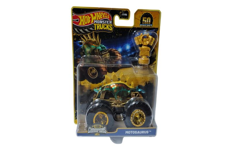 Carrinho - Motosaurus Trophy Champions - Hot Wheels - MATTELEntrando na celebração do 50º aniversario do Bigfoot com um caminhão de brinquedo comemorativo especial! Cada veiculo Die-cast em escala 1:64 apresenta um personagem favorito dos fãs do Monster Trucks com características premium, como decoração e detalhes dourados Inclui um acessório de troféu do campeonato Hot Wheels Monster Trucks Live Com 10 Caminhões favoritos dos fãs para escolher e três troféus possíveis, colecionadores e crianças de 3 a 6 anos vão querer todos eles Cada um e vendido separadamente As cores, os estilos e as decorações podem variar Inclui 1 caminhão de brinquedo Hot Wheels Monster Trucks e um acessório de troféuDetalhes: Certificação: Certificado pelos órgãos autorizados - OCP`S(Organismos de certificação de produtos) Registro: 005083/2021 OCP 0061Características: Conteúdo da embalagem: 01 Carrinho Material/composição: plástico e metal Ref: JDV96 Marca: Mattel Modelo: Hot Wheels Linha: Monster Trucks Idade indicada: 3+ Código de barras: 0194735289424 Comprimento Aproximado: 9,5cm Altura aproximada da embalagem (A x L x C): 16,5 cm x 6,5 cm x 15 cm Aviso: as cores podem variar entre as imagens mostradas acima e o produto Imagens meramente ilustrativasGarantia: 03 meses contra defeitos de fabricação