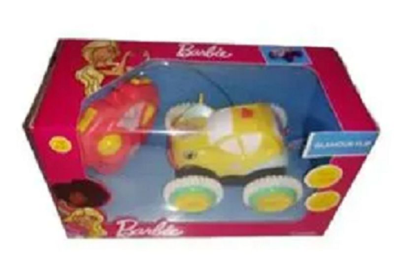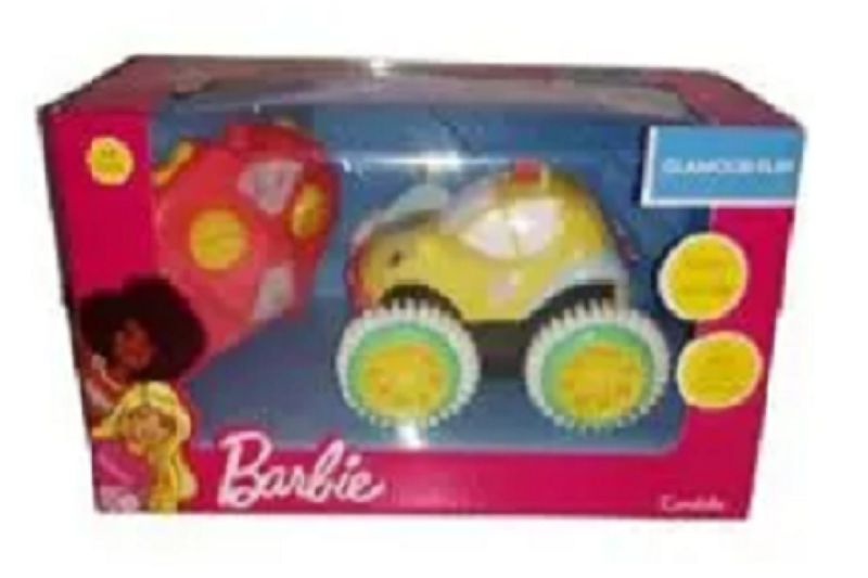 Carrinho Barbie Controle Remoto Glamour Fip Amarelo - Corre, Capota, Levanta - Candide