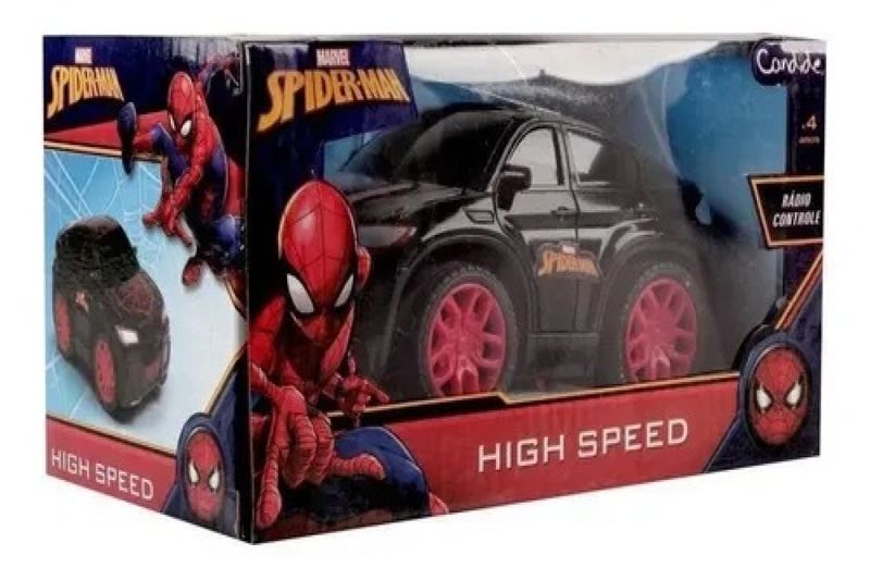 Carrinho Controle Remoto 3 funções - SpiderMan Homem Aranha High Speed Preto – Candide O Veículo de Controle Remoto - Disney - Marvel da Candide Spider Man , vem com um rádio controle de 3 funções para as crianças se divertirem muito Idade acima de 4 anos Utiliza 2 pilhas AA no controle e 3 pilhas AA no veículo ( não inclusas). Tamanho da embalagem 21 x11 x 11 cm Contem 1 carrinho e 1 controle Fabricante Candide