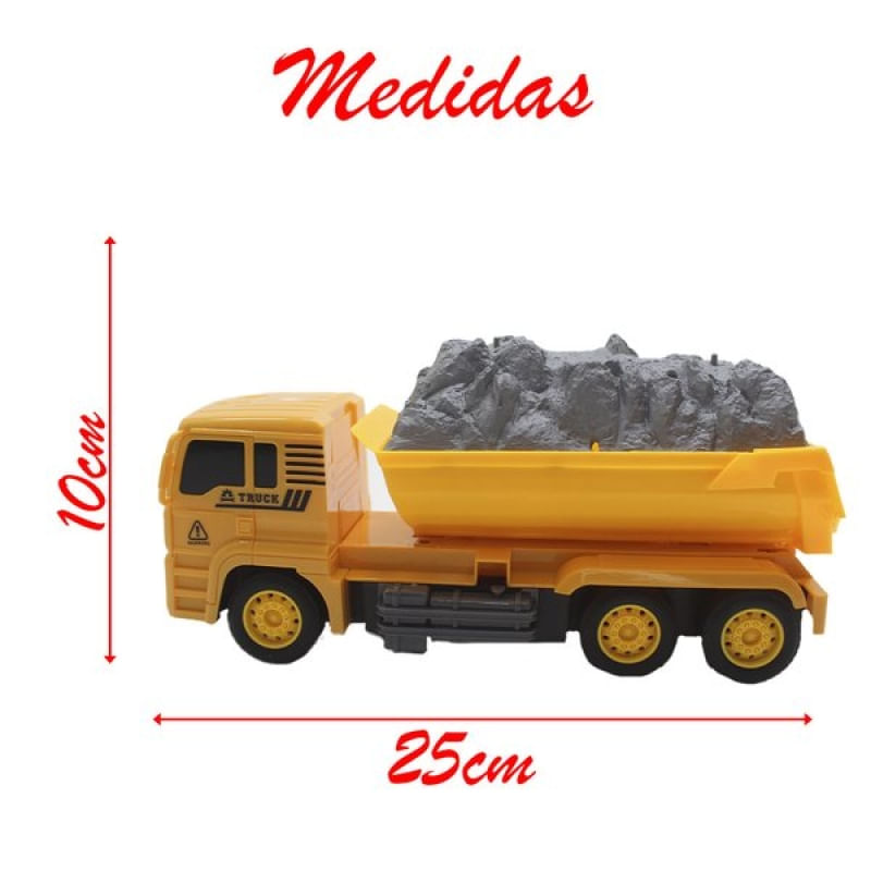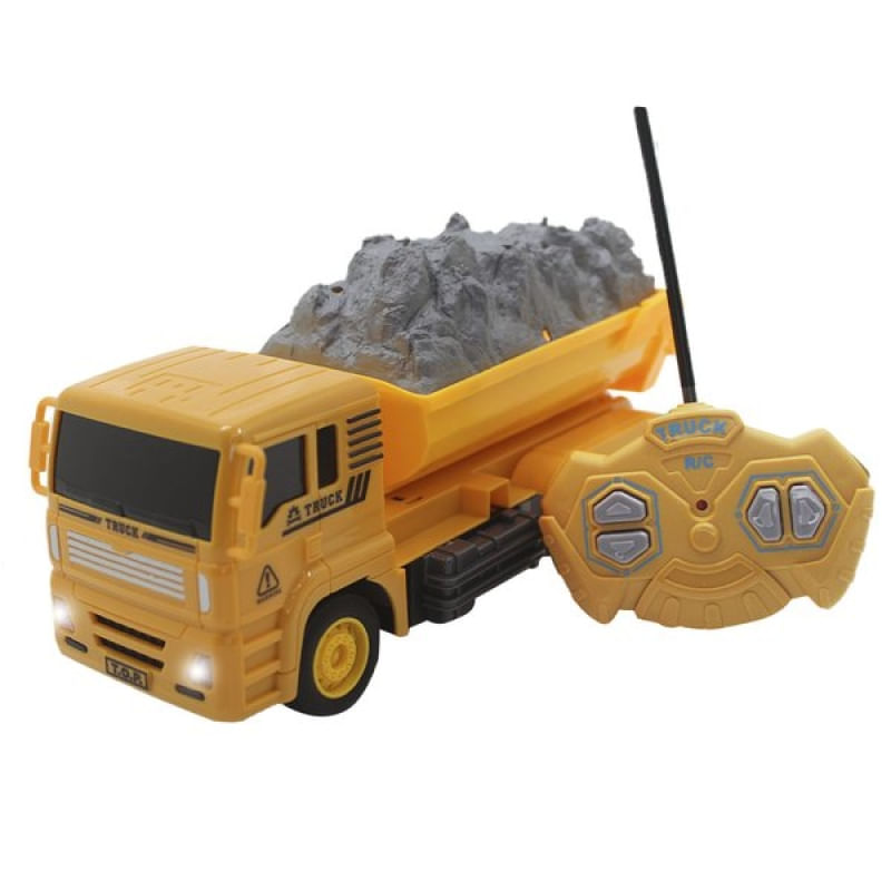 Carrinho Controle Remoto Caminhão Caçamba Construção - Carrinho Controle Remoto Caminhão Bombeiro Brinquedo. Acende os Farois quando acelera. Controle Utiliza 2 pilhas AA. Carrinho Utiliza 4 Pilhas AA. Recomendado para crianças maiores de 4 anos. Pilhas Não Inclusas. - Material: Plástico, e componentes disponível. SELO INMETRO: 003060/2022 ANATEL: 04105-21-06831 MODELO: CD5T36 Características Gerais do Produto: Garantia: • Garantia do site - 1 Mês
