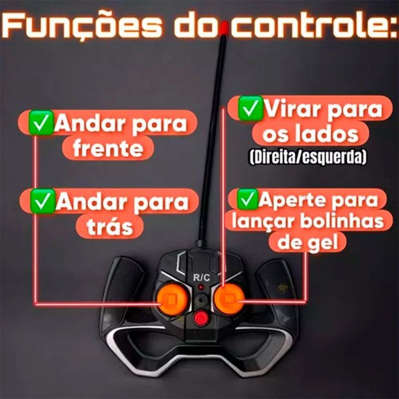 Carrinho Controle Remoto Tanque Bolinhas De Gel Ninho BoyCaracterísticas do produtoFranquia: Ninho Boy tanque gelTipo de alimentação do veículo: BateriaPersonagem: Ninho Boy TankIdade mínima recomendada: 3 anosCaracterísticas geraisFabricanteNinho BoyMarcaNinho BoyLinhatanque bolinha de gelFranquiaNinho Boy tanque gelModelocarrinho controle remoto recarregável bateria tanque bolinha de gel 180 water bombVersãowater bombEscala1:20AlimentaçãoTipo de alimentação do veículoBateriaTipo de alimentação do controle remotoPilhasVelocidade máxima: 10 km/h