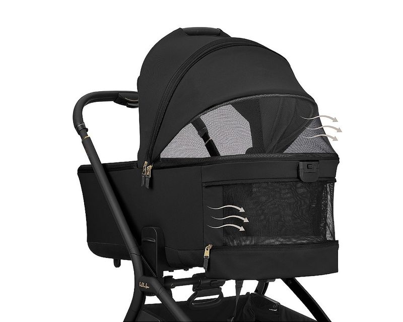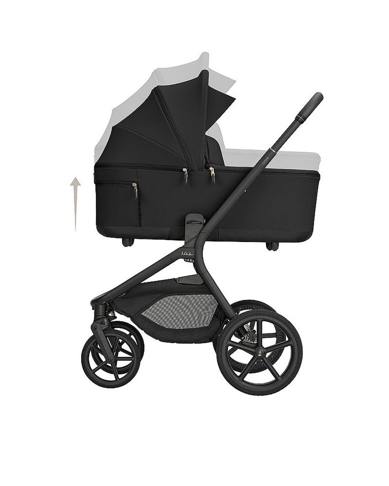 LANÇAMENTO - Carrinho de bebê GOYA PLATINUM PRETO NOIR - Kikkaboo Carrinho Goya: A Solução Completa para sua Rotina O Carrinho Goya não é apenas um item, é um sistema de mobilidade completo. Este kit premium foi pensado para acompanhar todas as fases do seu bebê com o máximo de segurança e estilo. Goya: O Seu Carrinho Ideal Se você busca o equilíbrio perfeito entre design de luxo e engenharia inteligente, o Goya é a sua escolha. Ele foi projetado para pais que não abrem mão do conforto do bebê, mas exigem um carrinho que seja leve de manobrar, fácil de guardar e visualmente impecável. É a evolução da categoria premium. Conforto na Medida: Ajuste de Altura do Assento Cada fase do bebê pede uma proximidade diferente. O Goya oferece 2 ajustes de altura no assento principal, permitindo que você deixe o bebê mais alto — facilitando a interação e o uso como cadeira de refeição em passeios — ou em uma posição mais baixa para maior estabilidade e autonomia. Tecnologia de Ponta: Cinto Magnético de 5 Pontos Diga adeus à dificuldade de prender o bebê! O Goya possui um fecho magnético ultra moderno que se conecta quase sozinho. Além disso, conta com uma tecnologia exclusiva que mantém as tiras do cinto elevadas e abertas, para que você acomode ou retire a criança sem que ela sente em cima das fivelas. Sem Barreiras: Rodas para Todos os Terrenos Passeie na calçada, no parque ou no shopping com a mesma suavidade. O Goya é equipado com amortecedores independentes e suspensão em todas as rodas. As rodas dianteiras possuem giro 360° para agilidade máxima e trava de direção para enfrentar terrenos mais irregulares com estabilidade total. Cesto Multiuso Extra Grande Esqueça a falta de espaço. Enquanto carrinhos convencionais suportam apenas 5kg, o cesto do Goya foi reforçado para carregar até 10kg. É o espaço ideal para as compras do dia ou todos os brinquedos favoritos do pequeno, sem comprometer a estrutura do carrinho. Moisés com Ajuste de Altura O conforto do recém-nascido precisa ser levado a sério. O moisés do Goya possui 2 níveis de altura, permitindo que os pais fiquem mais próximos do bebê nos primeiros meses, facilitando o contato visual e o cuidado constante sem precisar se curvar excessivamente. Ventilação e Proteção Máxima O Moisés do Goya é um verdadeiro casulo de bem-estar. Ele conta com telas respiráveis para circulação de ar otimizada, conta com proteção solar 50+ e tecido impermeável. Segurança contra os raios UV e conforto térmico em qualquer clima. Peso do carrinho com o assento: 11,1 kgs * Entrega prevista para final de Maio 2026.
