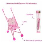 Carrinho De Boneca Bebê Reborn Brinquedo Baby Passeio DobrávCarrinho de Boneca Dobrável – Leve, Resistente e Ideal para Passeios DivertidosTransforme a brincadeira das crianças em momentos ainda mais especiais com o Carrinho de Boneca Dobrável. Com design moderno e cores vibrantes, é o acessório ideal para acompanhar os passeios das pequenas com suas bonecas favoritas.Fabricado em plástico resistente, metal e tecido poliéster, este carrinho oferece durabilidade e segurança, perfeito para crianças a partir de 3 anos. Seu diferencial está na estrutura dobrável, que facilita o transporte e o armazenamento — ideal para levar em viagens, passeios no parque ou até mesmo para brincar em casa.O carrinho conta com quatro rodas estáveis que garantem um deslocamento suave, além de um assento confortável para acomodar a boneca com todo cuidado. É o brinquedo ideal para estimular a imaginação, a criatividade e o cuidado nas brincadeiras do dia a dia.Benefícios:Estrutura leve e dobrável: fácil de montar, desmontar e transportarMaterial plástico resistente: mais segurança e longa vida útilDesign moderno e colorido: atrai a atenção das criançasEstimula a criatividade e o faz de contaIdeal para presentear crianças a partir de 3 anosConteúdo da embalagem:1 Carrinho de BonecaDimensões do Produto montado:Altura: 59 cmLargura: 17,5 cmObservação: Este modelo não acompanha bolsa.Garanta agora o carrinho de boneca que une praticidade, diversão e qualidade!