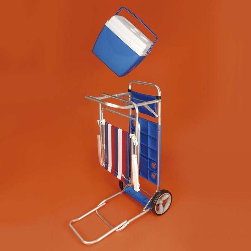 Carrinho De Praia Com Avanço Para Caixa Térmica - MorO Carrinho de Praia com Avanço para Caixa Térmica vai tornar seu verão ainda mais prazeroso com menos esforço! Além de carregar tudo o que precisa para curtir um dia na praia, seu carrinho se transforma em uma prática mesa com quatro encaixes para copos ou latas que chegarão geladinhas na sua caixa térmica. Manter os alimentos e bebidas bem conservados ficou mais fácil. O carrinho ainda vem com uma bolsinha porta-objetos em PVC para você guardar seus pertences pessoais, como chave, óculos, dinheiro e o que mais for necessário.- Principais Características:- Diferenciado, conta com espaço para transportar seu guarda-sol, cadeiras, esteira e também sua caixa térmica;- Suas rodas grandes garantem ótimo desempenho na areia;- Estrutura produzida pela Mor, em alumínio de excelente qualidade e tampo em polipropileno garantem durabilidade, já que seu carrinho não enferruja, mesmo em regiões litorâneas;- Para maior segurança, acompanha corda elástica com gancho para fixar seus pertences durante o .- Resistente, suporta até 20 Kg distribuídos e vai acompanhar você por muitos veraneios! Especificações Material Alumínio e Polipropileno Dimensões 111 x 84 x 49cm Capacidade 20Kg Altura cm Largura 50 cm Comprimento cm Peso Bruto 3 kg