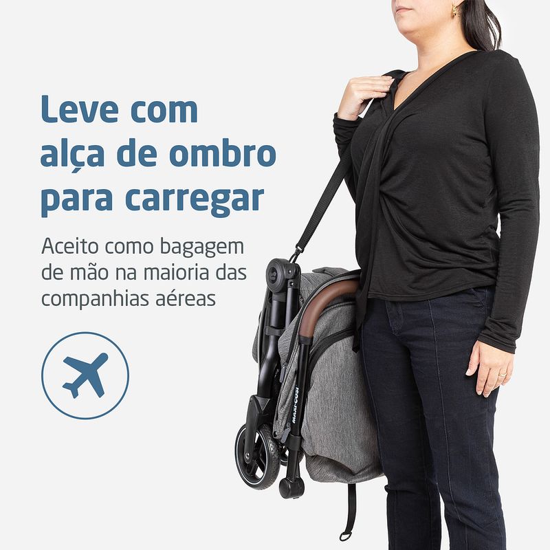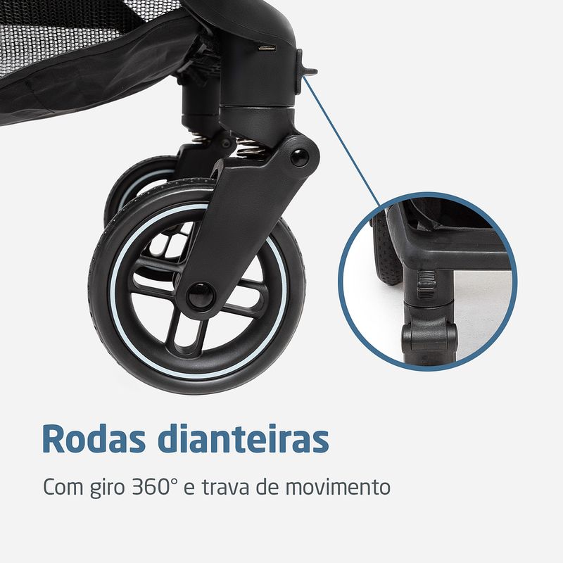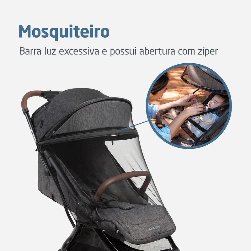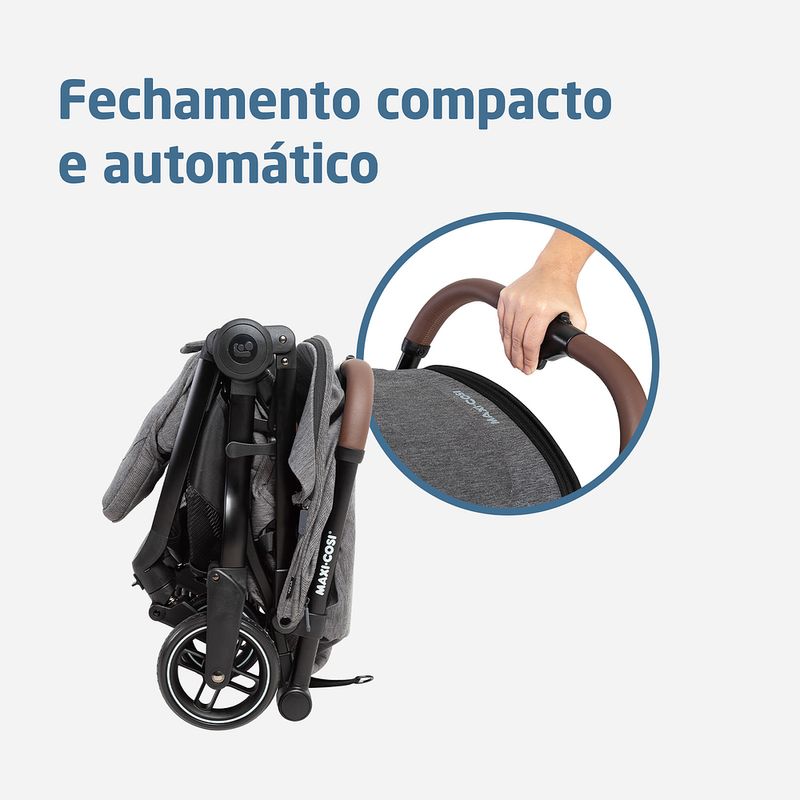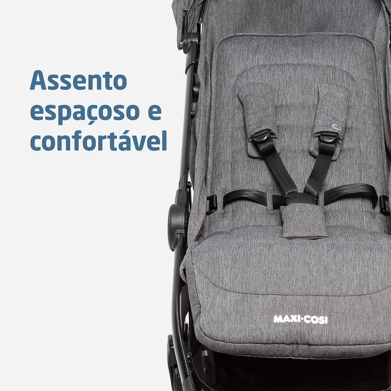 Carrinho Eva3 Select Grey - Maxi-Cosi O carrinho Maxi-Cosi Eva3 é uma opção moderna e prática para o dia a dia da sua família, com acessórios atualizados e fácil manejo e usabilidade. Tudo isso, sem abrir mão do conforto e do estilo. O Carrinho para bebês Eva3 da Maxi-Cosi tem opções de cores que combinam com diversos estilos, e é adaptável para permitir o máximo de conforto para o bebê. A família toda poderá ter momentos de passeio, de viagem ou simplesmente, um dia de rotina comum com um carrinho que atende a todos essas ocasiões, proporcionando segurança para o bebê. USO DESDE O PRIMEIRO DIA Feito para se adaptar as mais diversas situações, a versatilidade do carrinho para bebês Eva3 permite que ele seja usado desde o dia do nascimento. COMODIDADE E SEGURANÇA O carrinho para bebês Maxi-Cosi Eva3 possui regulagem de inclinação do assento e do apoio de pés, com trava na posição elevada, além de mais duas outras posições, o que ajuda a encontrar a posição mais confortável para o bebê. Além disso, o carrinho possui diversos elementos de segurança que garantem que o uso em qualquer ambiente e situação não represente risco nenhum para o bebê. Ele possui cintos de cinco pontos, totalmente ajustáveis e protetores acolchoados. As rodas possuem suspensão e uma textura diferenciada, que ajuda na adesão ao solo e também traz modernidade para o design do carrinho. O sistema de freios nas rodas traseiras e travas de direcionamento nas rodas dianteiras são pensados para ajudar também quem empurra o carrinho, com fácil acionamento e segurança. RESPEITANDO SUA FAMÍLIA E A NATUREZA O carrinho Maxi-Cosi Eva3 é todo feito com tecidos reciclados, sem deixar de oferecer qualidade e conforto para o uso. Pensamos sempre no futuro, nas boas experiências para seu bebê e para sua família, e também para as próximas gerações que virão. Esse compromisso com o meio ambiente nos inspira! Além disso, todos os nossos produtos possuem aprovação no INMETRO (Instituto Nacional de Meteorologia, Qualidade e Tecnologia), e possuem garantia exclusiva de cinco anos, mediante registro do produto no site Maxi-Cosi. É um companheiro confiável para toda a primeira infância do seu bebê. - Fechamento simples e compacto, podendo ser feito com uma única mão - Suspensão nas 4 rodas - Rodas com textura que aderem melhor ao solo - Cinto de 5 pontos com protetores acolchoados, 100% ajustáveis - Cinto com fivela magnética que fecha rápido - Suporta até 22kg de acordo com as normas europeias - Leve, compacto e com alça de ombro para carregar - Assento com inclinação total, espaçoso e confortável e apoio de pés com regulagem de altura para melhor adaptação do bebê - Manopla e barra frontal com revestimentos especiais - Freio e rodas dianteiras com giro 360° e trava de movimento - Capota ampla com visor de fechamento em imã, aba de sol removível, proteção UV50+ e alça para fixação de brinquedos - Acompanha mosquiteiro que barra luz excessiva e possuir zíper para abertura - Feito com tecidos reciclados, pensando no futuro do seu bebê e do mundo. - Acompanha adaptadores para bebês conforto Maxi-Cosi (vendidos separadamente) - Aceito como bagagem de mão na maioria das companhias aéreas (*consulte a cia aérea antes de embarcar) - Aprovado pelo Inmetro - Garantia de 5 anos mediante registro gratuito no site da marca em até 6 meses após a compra efetuada no Brasil Especificações Técnicas: Fechamento Reclinável Apoio para os pés Capota Manopla Barra frontal Cinto de segurança Cesto Rodas Trava de direcionamento de rodas Mosquiteiro incluso Adapta bebê conforto Peso do Produto: 7,85 kg Dimensões do Produto Fechado: 24 x 49,5 x 55,5 cm Automático e compacto 3 posições de inclinação Com FPS UV50+ | Visor com imã | Aba de sol removível | Alça para brinquedo | Extensível Com revestimento especial 5 pontos com protetores acolchoados ajustável em altura e largura Cesto inferior com capacidade para 5 kg 4 rodas com suspensão Giro 360° com trava nas rodas dianteiras Com zíper para abertura, facilita o acesso ao bebê sem remover Capa removível e lavável Inclui adaptadores compatíveis com bebês conforto Maxi-Cosi: Citi, Citi2, Pebble 360, Pebble 360 Pro2, Marble, Cabriofix, Cabriofix i-Size Registro 006372/2024