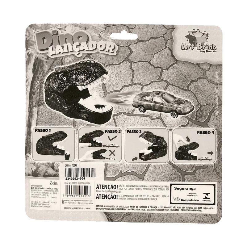 Com o Dino Lançador a diversão é garantida. Este conjunto com lançador e carro é perfeito para levar a ação, diversão e as manobras mais radicais para onde você quiser. Especificações • Marca: Art Brink • Referência: ZB182 • Material: Plástico • Idade Recomendada: A partir de 06 anos • Garantia do Fornecedor: 03 meses contra defeitos de fabricação • Validade: Indeterminada Itens Inclusos • 01 Lançador • 01 Carrinho Peso e Dimensões Aproximadas do produto na caixa: • Largura: 23 cm. Altura: 9 cm. Comprimento: 23 cm. • Peso: 240g. Produto Certificado Compulsório – Registro Inmetro: BRICS 008424/2019 OCP 0098 As cores podem variar entre as imagens mostradas acima e o produto. Imagens meramente ilustrativas.