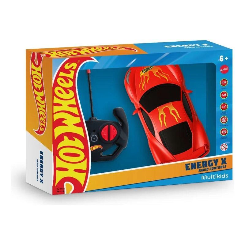 Seja bem-vindo(a) a Loja NIVALMIX O carrinho com controle remoto Energy X Radio Controle Hot Wheels da Mattel é a escolha ideal para quem busca velocidade, emoção e diversão em alta performance. Com o icônico estilo Hot Wheels e design robusto, ele proporciona corridas intensas, curvas radicais e muita aventura — tudo no controle das mãos. Equipado com controle remoto fácil de usar, o carrinho responde rapidamente aos comandos de direção e aceleração, oferecendo agilidade e precisão nas manobras. A estrutura resistente garante durabilidade, suportando brincadeiras vibrantes, quedas e superfícies variadas — perfeito para uso interno ou externo. Compacto e moderno, o Energy X RC Hot Wheels combina o prestígio da marca com tecnologia acessível, sendo ideal para crianças (e até adultos) que adoram competições e velocidade. Uma excelente opção para presentear e garantir horas de adrenalina e brincadeira com qualidade e estilo. Especificações: • Marca: Mattel • Referência: BR2472 • Material: ABS, PS • Linha: Hot Wheels • Modelo: Energy X Radio Controle • Garantia do Fornecedor: 3 meses contra defeitos de fabricação • Validade: Indeterminada • Escala: 1:22 • Alimentação: Carro: Utiliza 3 pilhas 1.5V AA (não Inclusas); Controle: Utiliza 2 pilhas 1.5V AA (Não Inclusas) • Registro Certificação do Inmetro: 300/2002 OCP:0098 • Anatel: 03142-25-06569 • Indicação: Não recomendável para crianças menores de 3 (três) anos. • Dimensões da embalagem do produto (aproximadas): 32 x 24 x 8 cm Itens Inclusos: • 01 Carrinho • 01 Controle Remoto