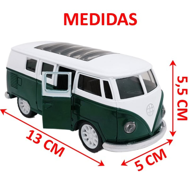 Carro Miniatura Colecionável Volkswagen Kombi Verde Fricção - O estilo retro original você de volta para o passado. Miniaturas de brinquedo feitas para crianças ou colecionadores! Alimentado por fricção: basta empurrar o carro para trás e, em seguida, soltar e assistir o carro rodar! O carro é instalado com um mecanismo de atrito especial em suas rodas para que possa avançar assim que seu filho o puxar para trás. Portas abertas: exterior e interior detalhados com Uma porta móvel que abre e fecha facilmente! Pneus de borracha. Especificações: Cores: Verde e Branco; Medidas: Altura 5,5cm x Largura 5cm x Comprimento 13cm; SELO INMETRO: CE-BRI/BRICS 00001-13; NM 300/2002; PRODUTO É INDICADO PARA CRIANÇAS A PARTIR DE 3 ANOS; Conteúdo Da Embalagem: 1 Carro Kombi Em Miniatura Colecionável Verde; Características Gerais do Produto: • Material: Plástico • Modelo: Kombi Colecionável • Cor: Verde • Dimensões aproximadas: Altura 5,5cm x Largura 5cm x Comprimento 13cm Garantia: • Garantia contra avarias no transporte