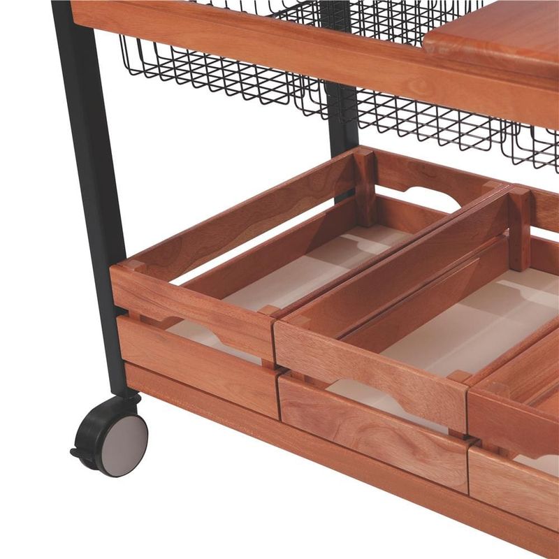 Para servir um bom churrasco com praticidade, qualidade e elegância a Tramontina traz este belíssimo Carro com rodízios, gaveta e cestos multiuso. Fabricado com madeira mogno africano e proteção antimicrobiana é ideal para guardar seus utensílios, organizar os itens que você precisar e ainda cortar e servir as carnes em grande estilo. Versátil e moderno será a estrela principal dos seus eventos em família e com os amigos.