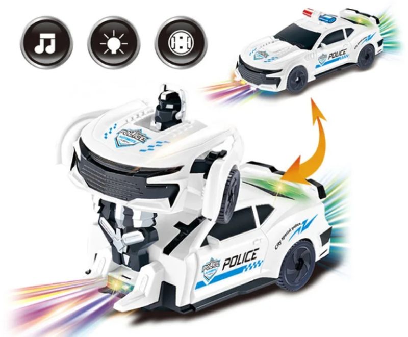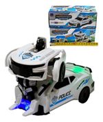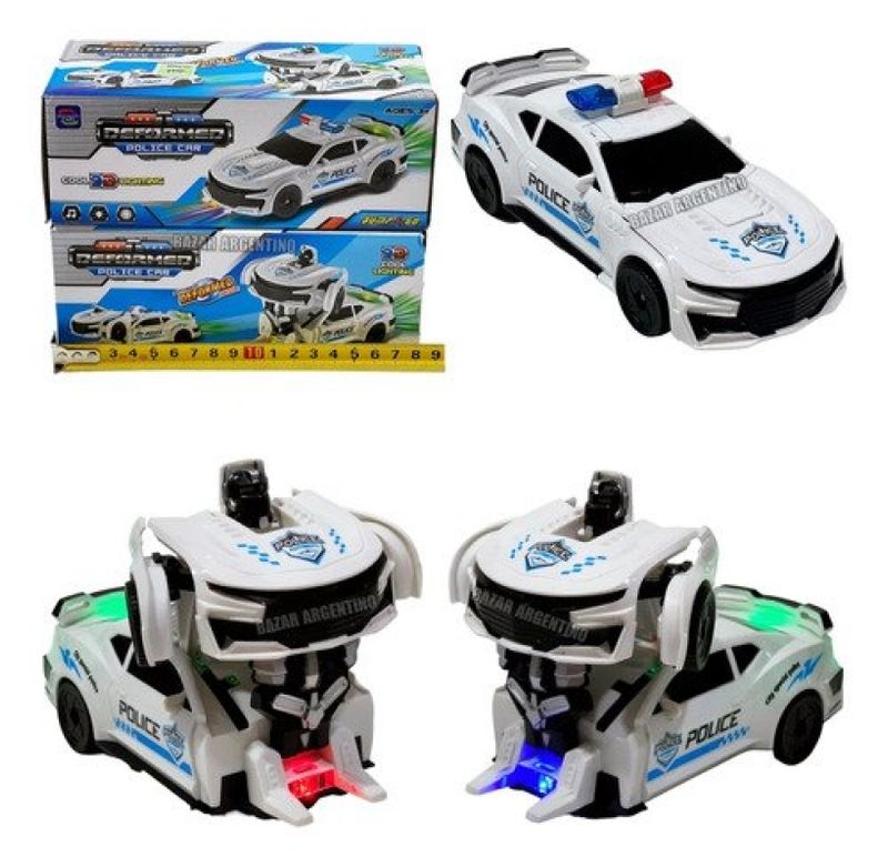 Carro Robô Policial Com Movimento Som E Luzes Brinquedo - As crianças podem ver o carro de polícia do robô se mover para frente. Se bater na parede ou em um objeto, ele muda automaticamente sua direção. Fornecendo resistência e uso de longa duração, este brinquedo é habilmente trabalhado com uma construção de plástico durável para resistir a choques nas paredes e intermináveis horas de diversão. Atraente e colorido, o Robô Policial está equipado com lindas luzes. As crianças vão adorar as luzes hipnotizantes combinadas com as sirenes da polícia. 2 EM 1. É um robô ou é um carro de polícia? Bem, na verdade são os dois. Para se divertir ainda mais, este carro de polícia se transforma em um robô na parte frontal - bem diante de seus olhos - para proporcionar o dobro de diversão aos mais pequenos. Especificações: Alimentação: 3 Pilhas AA (NÃO INCLUSAS) Cor: Branco Função: Acende Luzes, Possui Som e Anda Sozinho. Medidas: Altura: 7cm, Comprimento: 18cm, Largura: 7,5cm OBS: Este carrinho não é de controle remoto. Características Gerais do Produto: Garantia: • Garantia do site - 1 Mês