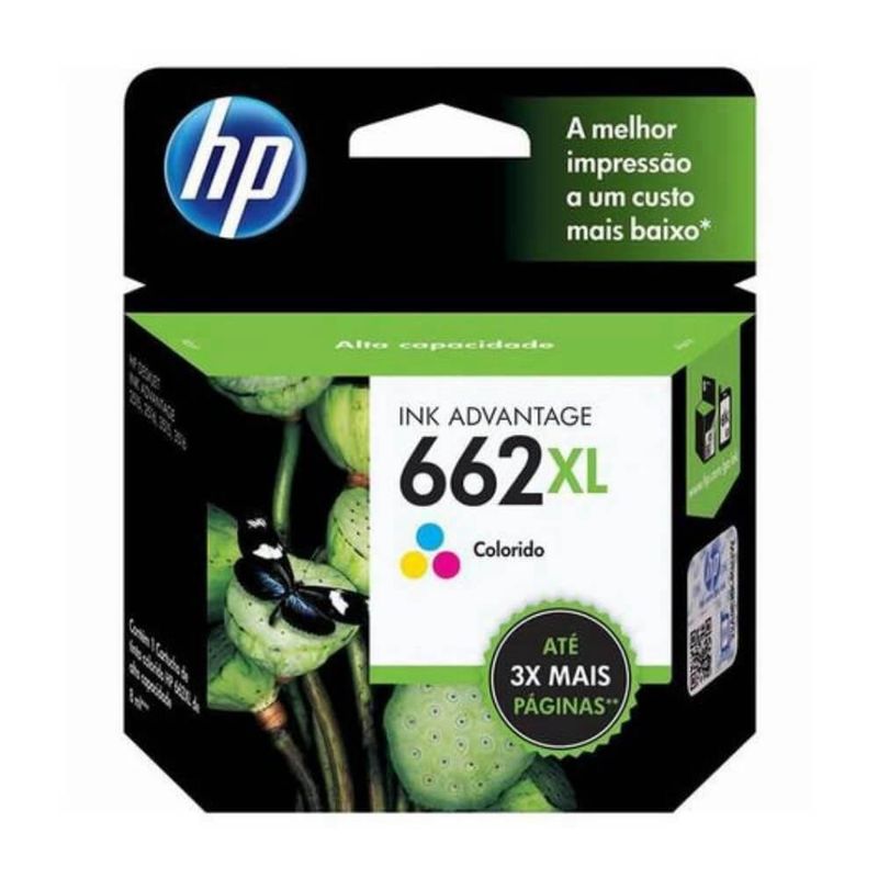Cartucho Original Hp 662 XL Colorido 8 ML - CZ106ABEspecificações:Desempenho: Até 360 páginasCompatibilidade:- Multifuncional HP Deskjet Ink Advantage 2516,- Impressora HP Deskjet Ink Advantage 3516 e-All-in-One,- Impressora Multifuncional HP Deskjet Ink Advantage 3546,- Impressora Multifuncional HP Deskjet Ink Advantage 2546,- Impressora Multifuncional HP Deskjet Ink Advantage 1516,- Impressora e-All-in-One HP Deskjet Ink Advantage 4646,- Multifuncional HP Deskjet Ink Advantage 2646.Cor: PretoTipo de Desempenho: PadrãoConteúdo da Embalagem: Cartucho novo de tinta HP originalGarantia de 30 dias por defeito de fabricação diretamente ao SAC.