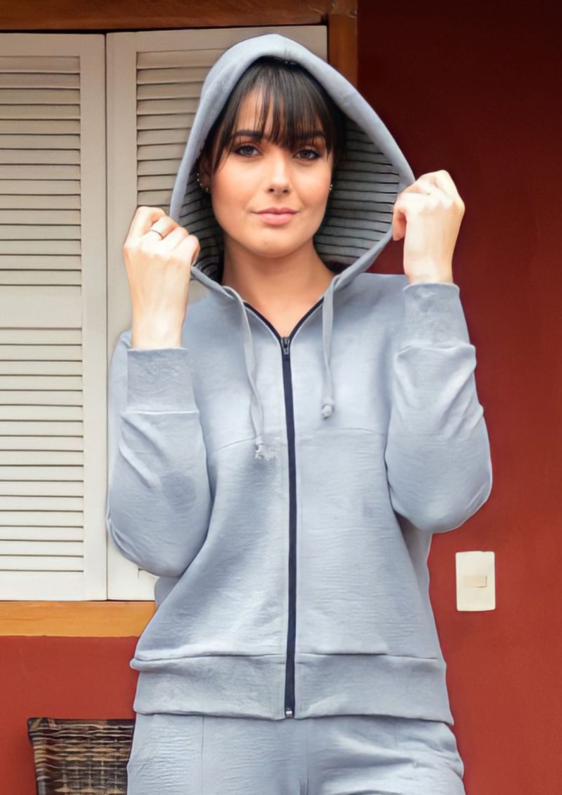 Casaco em Moletom Cinza Mescla com Capuz, bolsos e zíper frontal. Possui acabamento de punhos nas mangas e barra. Modelagem ajustada ao corpo. Malha bastante flexível e ajustável. Moderno, confortável e despojado. Arrase! Composição: Confeccionado em 50% Algodão e 50% Poliéster. Casaco construído em Moletom NÃO flanelado. Medidas Aproximadas: P: 60 x 102 x 98 x 92 cm (Comprimento, Busto, Cintura e Quadril). M: 62 x 108 x 104 x 98 cm (Comprimento, Busto, Cintura e Quadril). G: 64 x 114 x 110 x 104 cm (Comprimento, Busto, Cintura e Quadril). GG: 66 x 120 x 116 x 110 cm (Comprimento, Busto, Cintura e Quadril). XL: 68 x 126 x 121 x 116 cm (Comprimento, Busto, Cintura e Quadril). Todos os dados informados são aproximados, do peso às medidas. ATENÇÃO PARA AS MEDIDAS. MODELAGEM AMPLA.