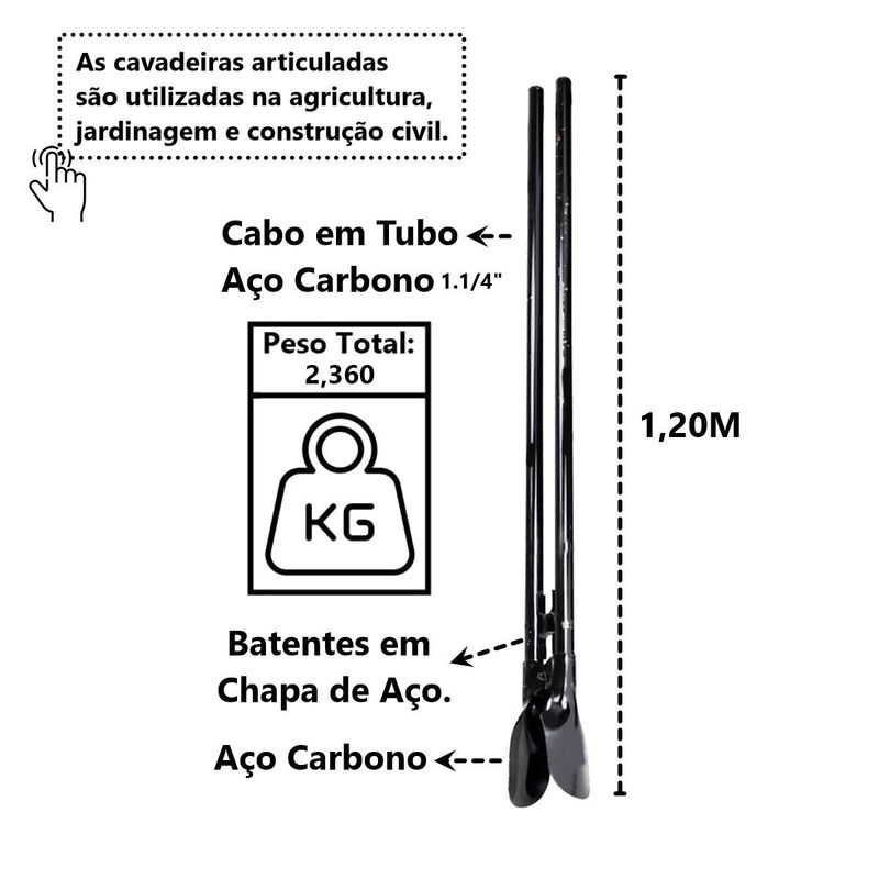 Cavadeira Standard Articulada Cabo Tubo em Aço Carbono 120cm