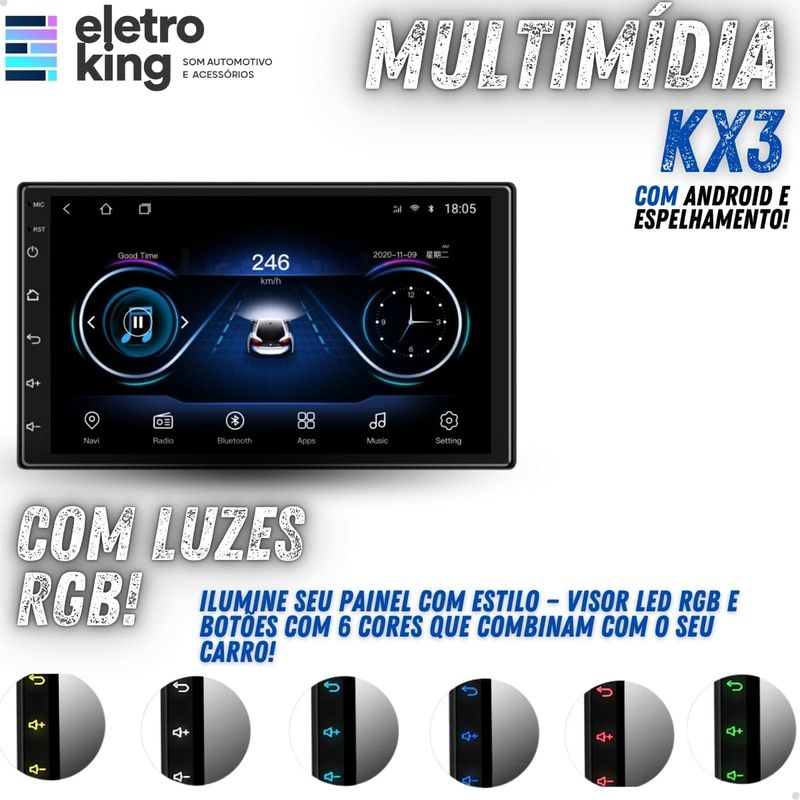 Seja bem-vindo a Eletroking, leia atentamente a descrição do produto abaixo antes da compra, qualquer dúvida, nos acione no campo de perguntas do anúncio. Central Multimidia KX3 KRC4100 Android 7" Octacore Carplay BT/GPS/Espelhamento/USB/FM - 2GB Ram Transforme a experiência a bordo com a Central Multimídia KX3 KRC4100, projetada para oferecer tecnologia, desempenho e conectividade de última geração. Equipada com Android 13, processador Octacore e 2GB de RAM, garante resposta rápida e suporte para rodar aplicativos sem travamentos. São 32GB de memória interna, permitindo instalar seus apps de navegação, música e streaming com tranquilidade. Especificações Técnicas: • Android 13 • 2GB de RAM • 32GB de Memória interna para Download de Aplicativos • Sistema DOUBLE DIN • Tela de 7″ em vidro IPS HD 1024x600p capacitiva • Saída de áudio • Equalizador 12 bandas e pré-equalizadas • Conector Principal (Acompanha Chicote) • Conexão KEY1 e KEY2 para Controle de Volante • 2 USB traseiro com Extensão e Função Carregador • FM com 18 Memórias • 4 Canais Estéreo de 52W • Entrada para Câmera de Ré • Entrada de Áudio e Vídeo RCA • Controle de Antena Elétrica • Entrada para Microfone Externo • Microfone Embutido • Teclas Touch com 7 Cores • Processador Octacore • Sistema de Vídeo: AVI – MP4 – DIVX – MPEG – DAT – FI.V RMVB – VCB – MOV – JPEG • Sistema de Áudio: MP1 – MP2 – MP3 – MP4 – MP5 Dolby Digital – WMA – PCM – LPCM – MPEG Conteúdo da Embalagem: • 1 Chicote principal para Alimentação e para Alto Falantes • 4 Parafusos • 1 Antena GPS • 2 Extensões USB • 1 Aparelho Android 7″ • 1 Chicote Acessórios RCA • 2 Suportes para Fixação • 1 Chicote entrada Câmera de Ré e antena wi-fi Importante: • Garantia de 273 dias. • Valor Unitário. • Todos os Nossos Produtos São Novos, Originais e Acompanham Nota Fiscal. • A Eletroking recomenda que a instalação seja feita por profissional especializado e não se responsabiliza pelo mau uso do produto.