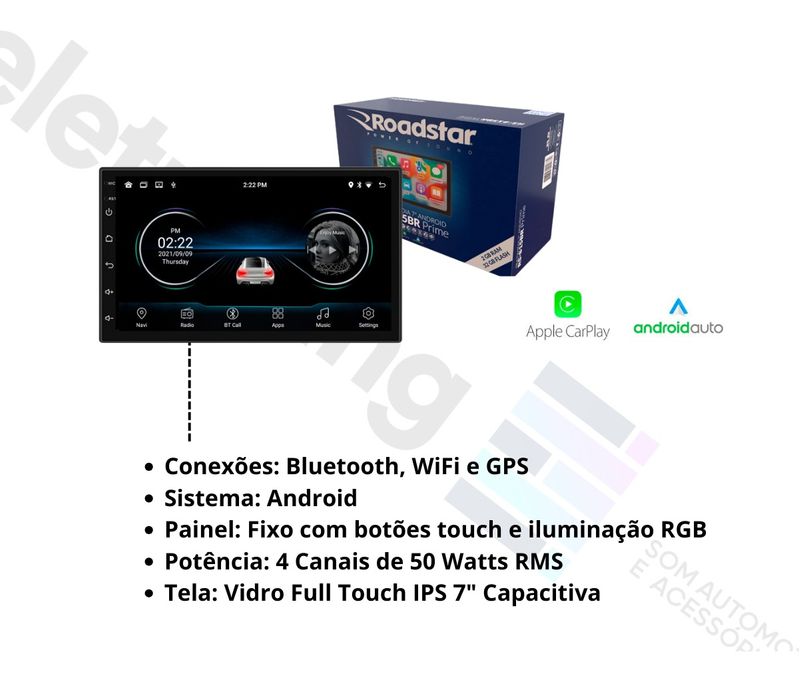 Central Multimídia Universal 7 Android Carplay 2gb Rs815br Rs 815br A Central Multimídia Roadstar RS815BR Prime Android 7" proporciona uma experiência automotiva avançada com sua tela de 7 polegadas e sistema Android. Com suporte a Carplay, Bluetooth, GPS e espelhamento de tela, oferece integração completa com dispositivos Apple e Android. Seus 2GB de RAM garantem desempenho ágil, enquanto as portas USB e o suporte a FM ampliam as opções de entretenimento. Uma escolha ideal para quem busca conectividade e comodidade no interior do veículo. Especificações Técnicas: Sistema: Android Processador: Quad Core 1.3 Ghz Memória RAM: 2 Gb Memória FLASH: 32 Gb Painel: Fixo com botões touch e iluminação RGB Tela: Vidro Full Touch IPS 7" Capacitiva Rádio: FM com memória para 18 estações FM Conexões: Bluetooth, WiFi e GPS (Acompanha Antena) Entradas traseiras: 2 Vídeo Auxiliar, 2 RCA (Audio), 1 Câmera de Ré, 2 USB´s (USB e USB-C) e Microfone Externo (Acompanha Microfone) Saídas: 2 RCA (Audio) e 2 RCA (Vídeo) Comando de Volante: SIM (em alguns modelos de carros poderá ser necessário o uso de interface) Potência: 4 Canais de 50 Watts RMS Conteúdo da Embalagem: 01 Central Multimídia Roadstar RS815BR Prime Android 7" Carplay Manual e Certificado de Garantia Importante: Garantia de 273 Dias. Valor Unitário.
